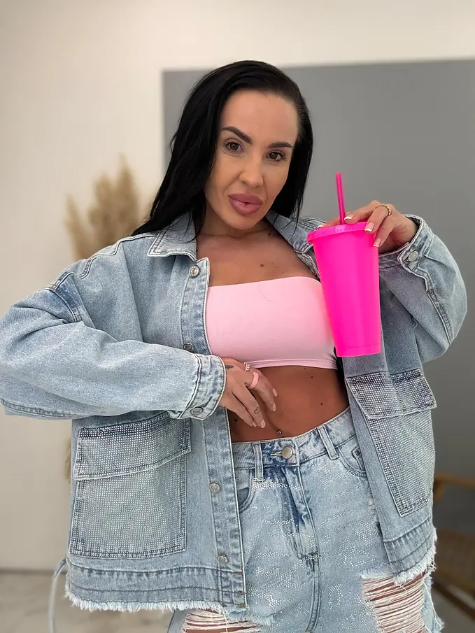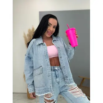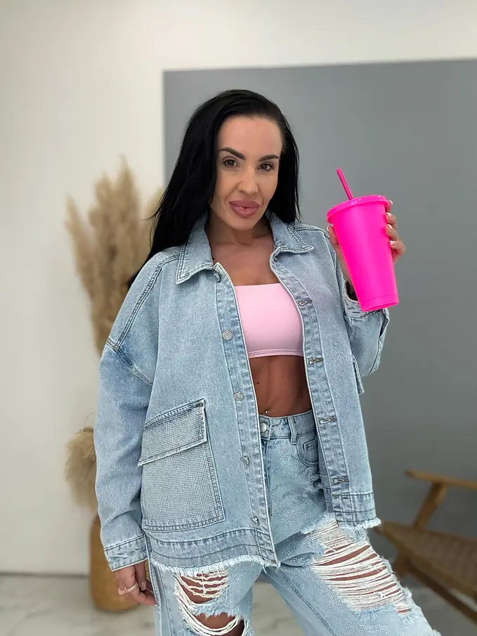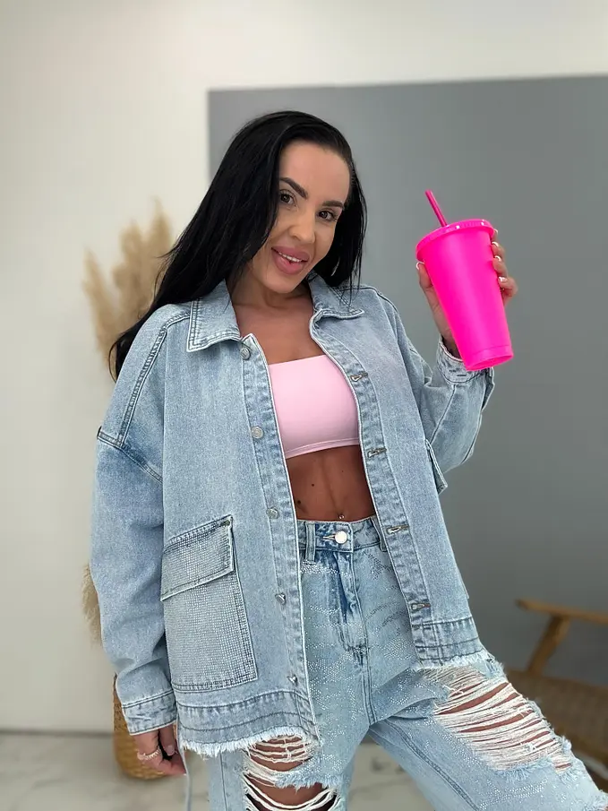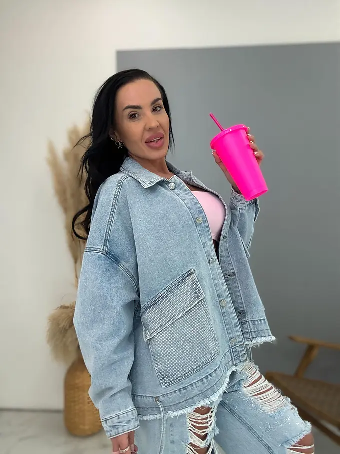 Dámsky denim kabát s kamienkami CELESTE