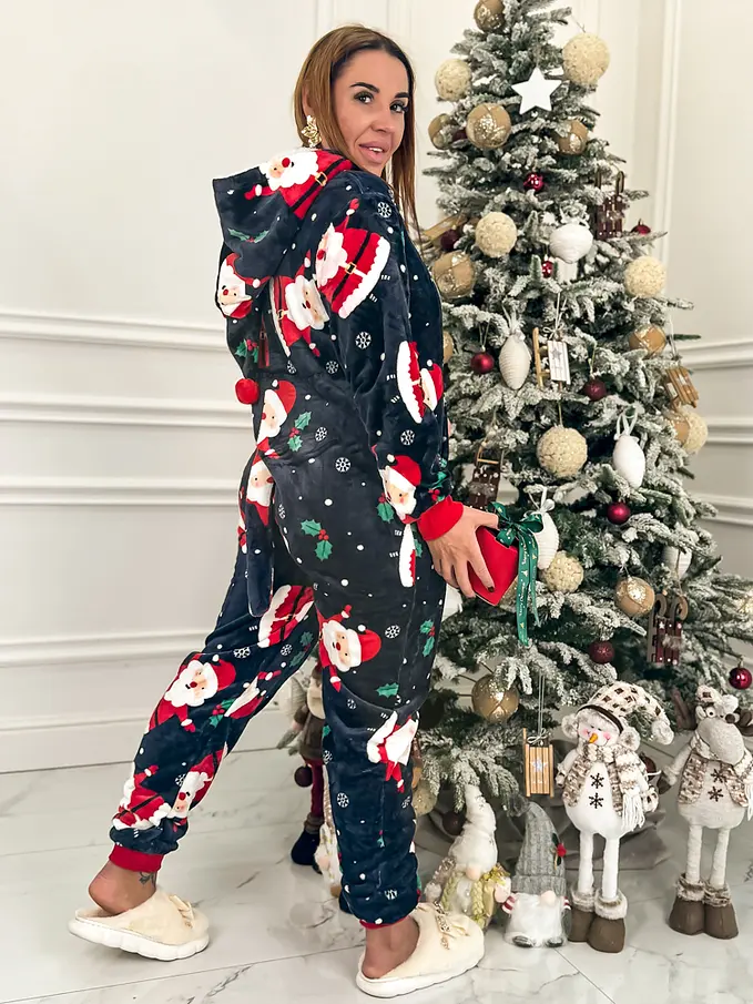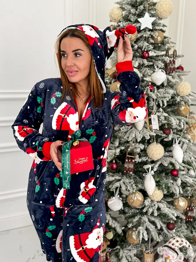 Pohodlný overal z príjemného mäkkeho materiálu. S kapucňou . Modelky mali na sebe veľkosť M.