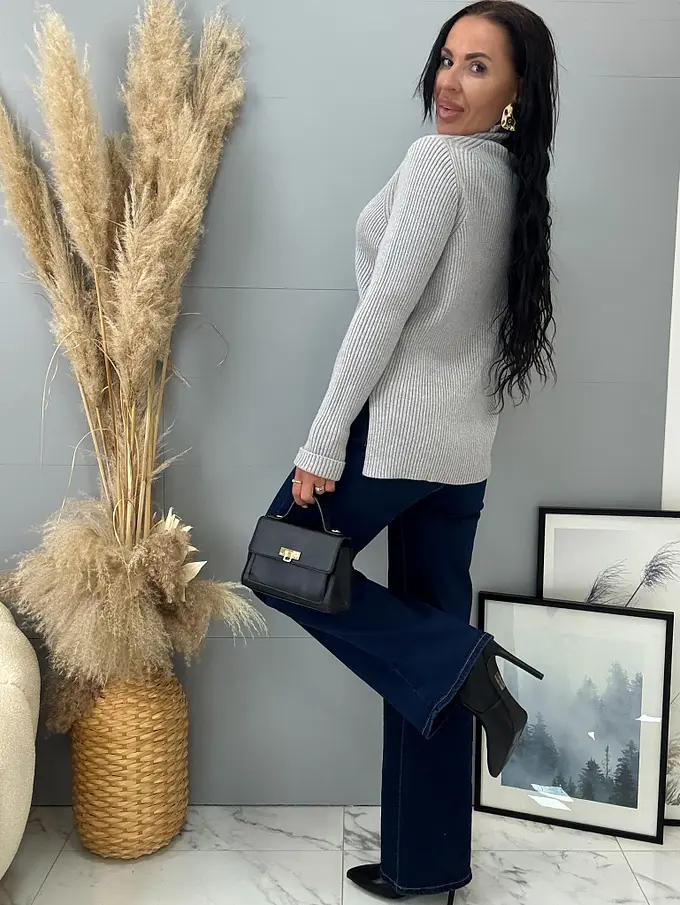 Modelka čiernovláska meria 164 cm a váži 64 kg. Nosí veľkosť M/L. Miery: 99 cm - 74 cm - 93 cm.