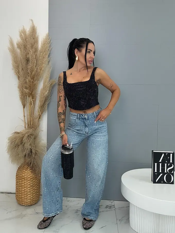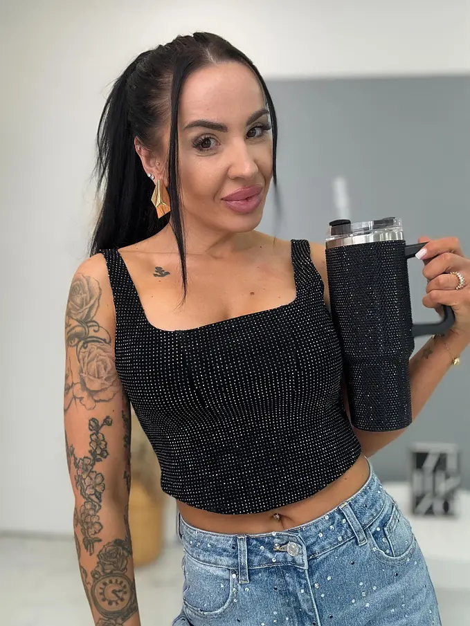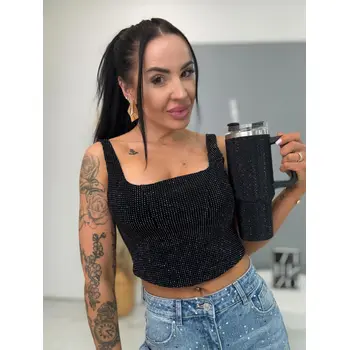 Moderný crop - top. Elastická látka. S gumenou vložkou na zadnej strane. Na boku so zipsom.