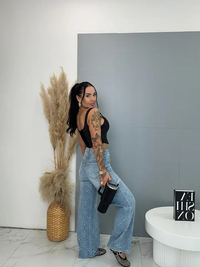 Modelka meria 164 cm a váží 57 kg. Na fotografii má na sebe veľkosť S