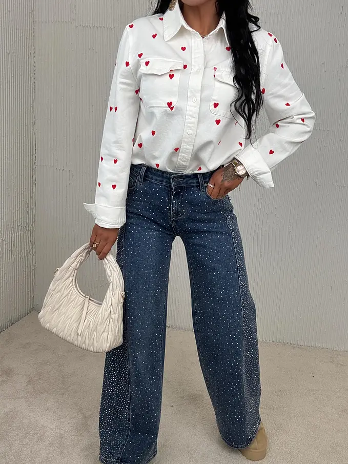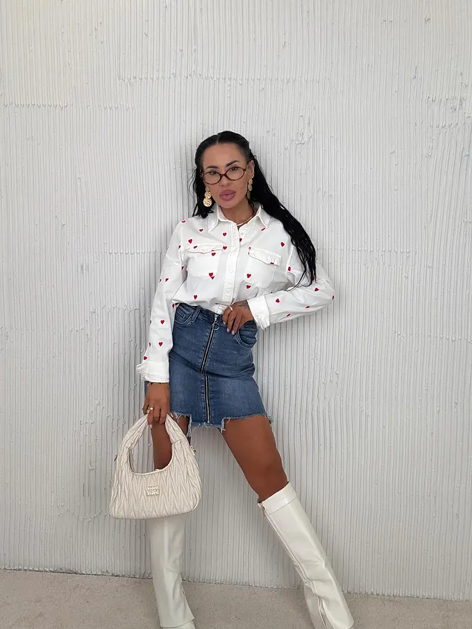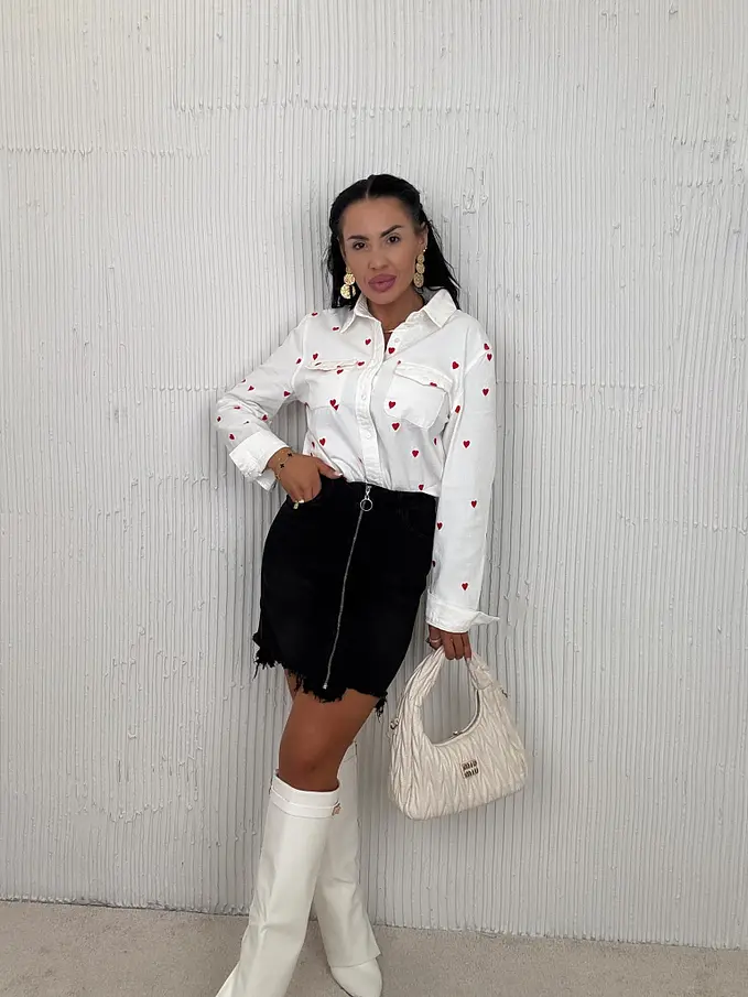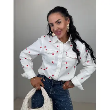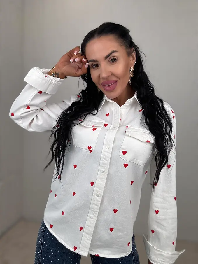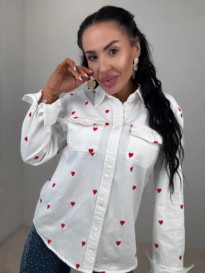 Denim košeľa s vyšívanými srdiečkami MADDIE