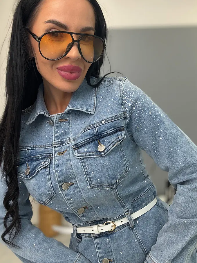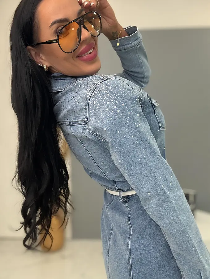 Denim šaty na gombíky zdobené kamienkami JENNIE