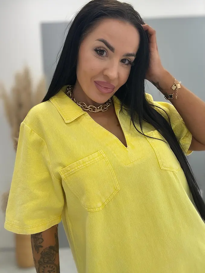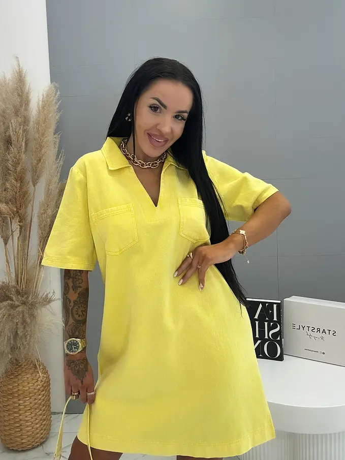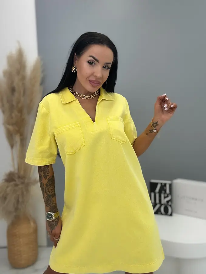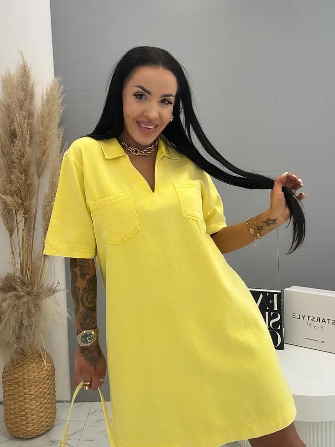 Premium kvalita. Šik a voľné denimové šaty by nemali chýbať v žiadnom dámskom šatníku. Priliehavé džínsové šaty sú vyrobené z príjemného materiálu. Látka nie je elastická.