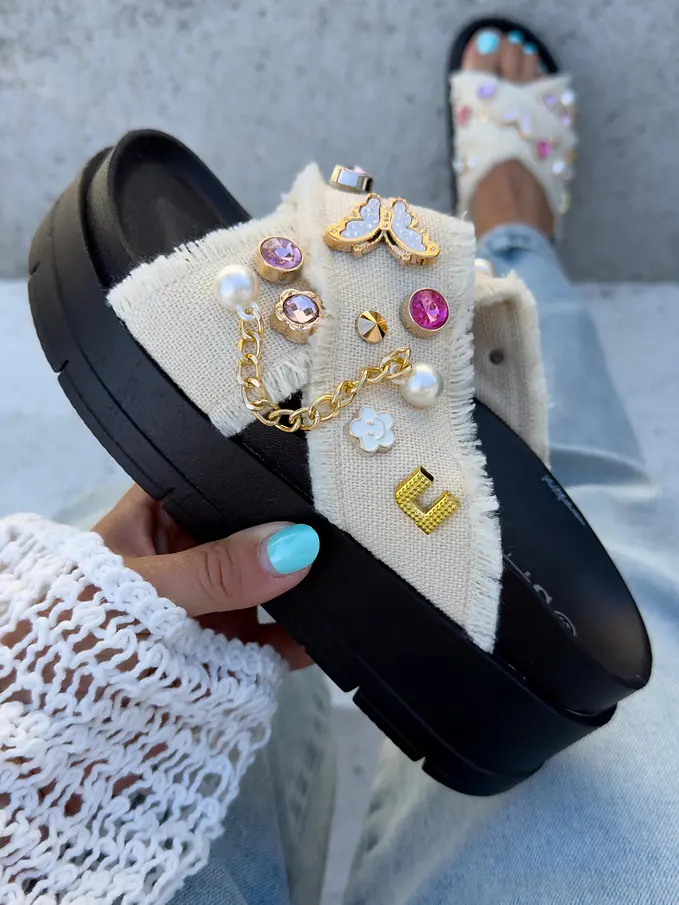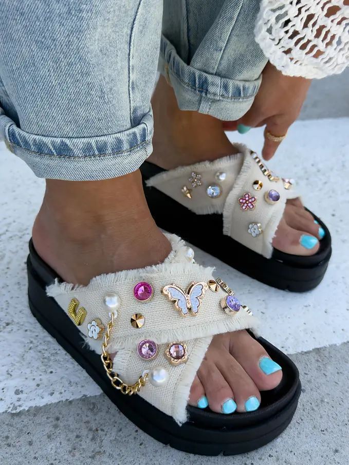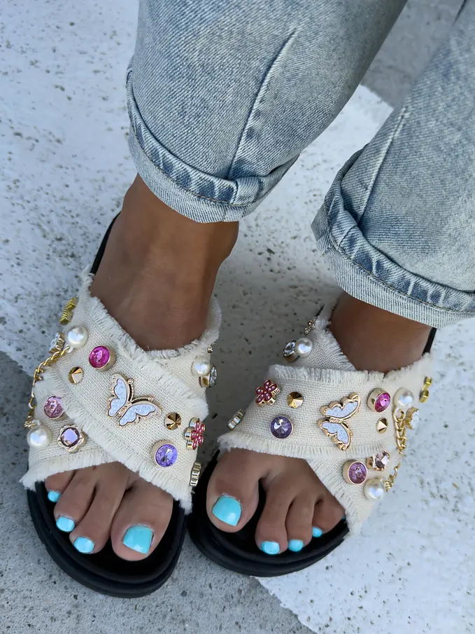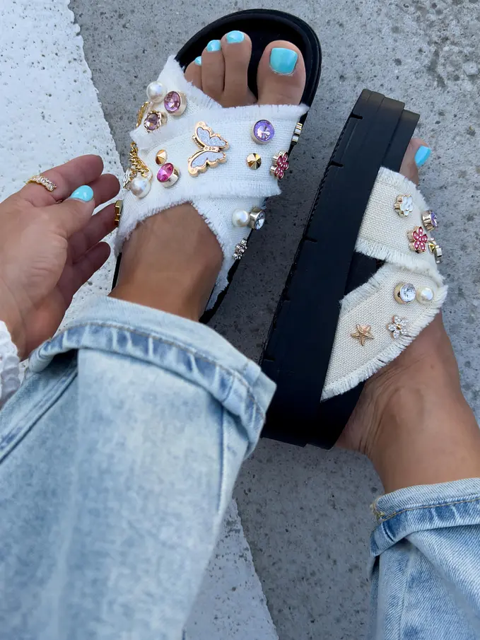 Denim šľapky zdobené kamienkami COLLINS-