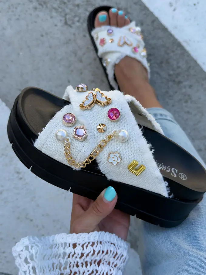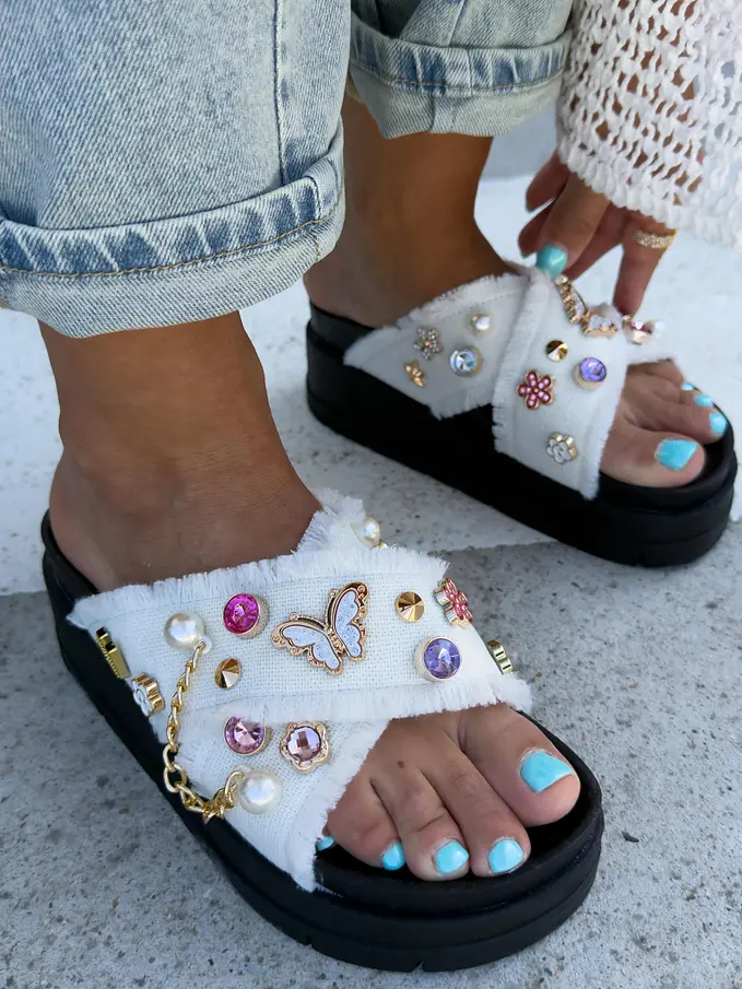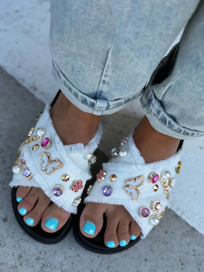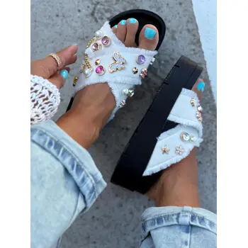 Denim šľapky zdobené kamienkami COLLINS-