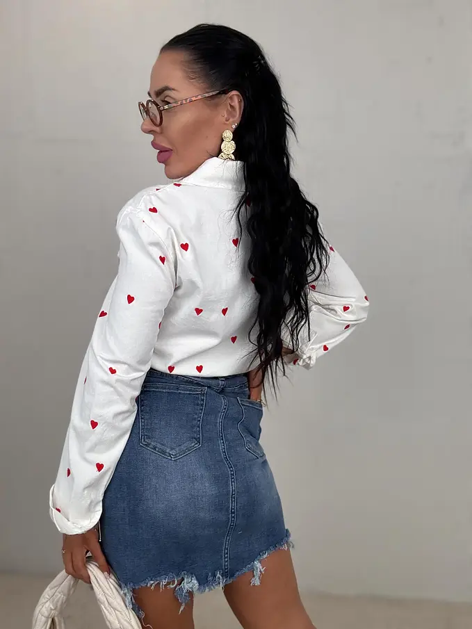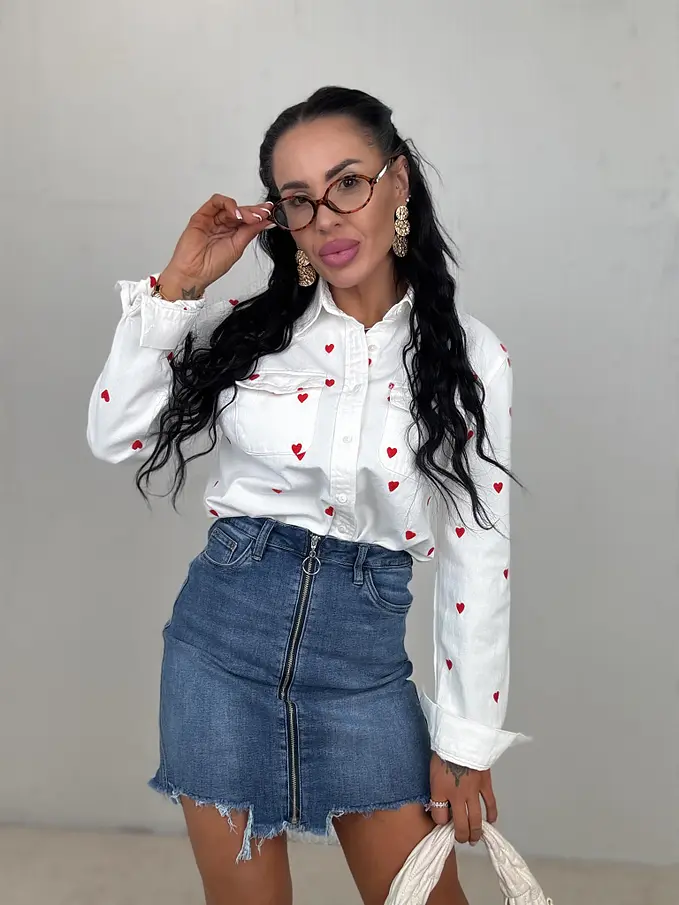 Modelka čiernovláska meria 164 cm a váži 64 kg. Nosí veľkosť M/L. Miery: 99 cm - 74 cm - 93 cm.
