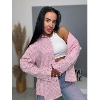 Denimový košeľový kabát s kamienkami ANZIA