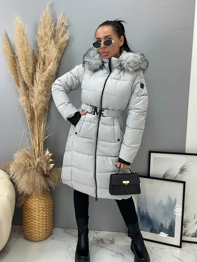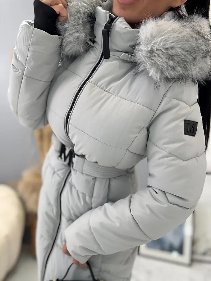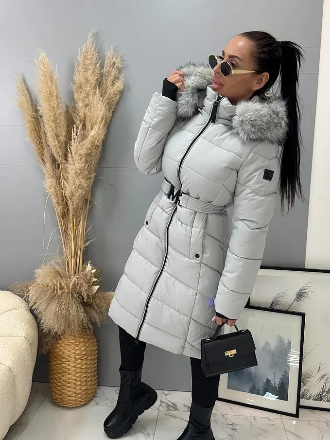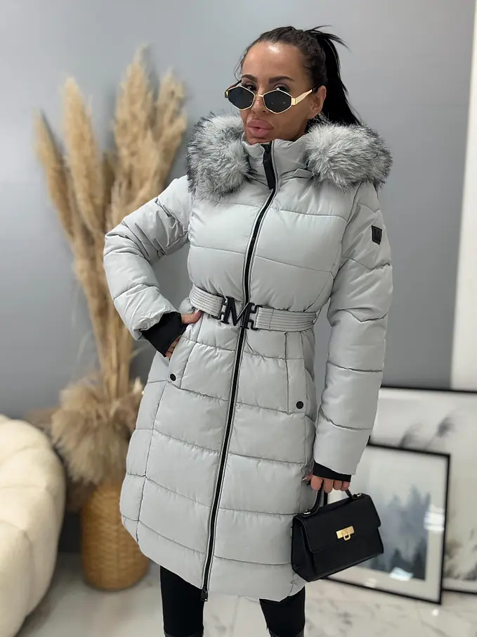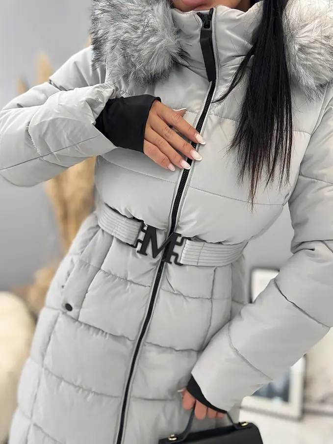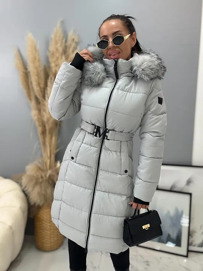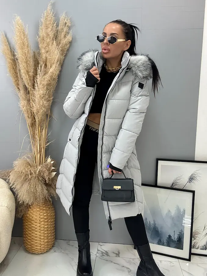 Dlhá bunda s kožušinou a kapucňou AYDENA