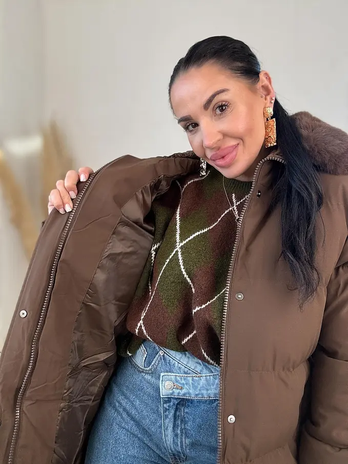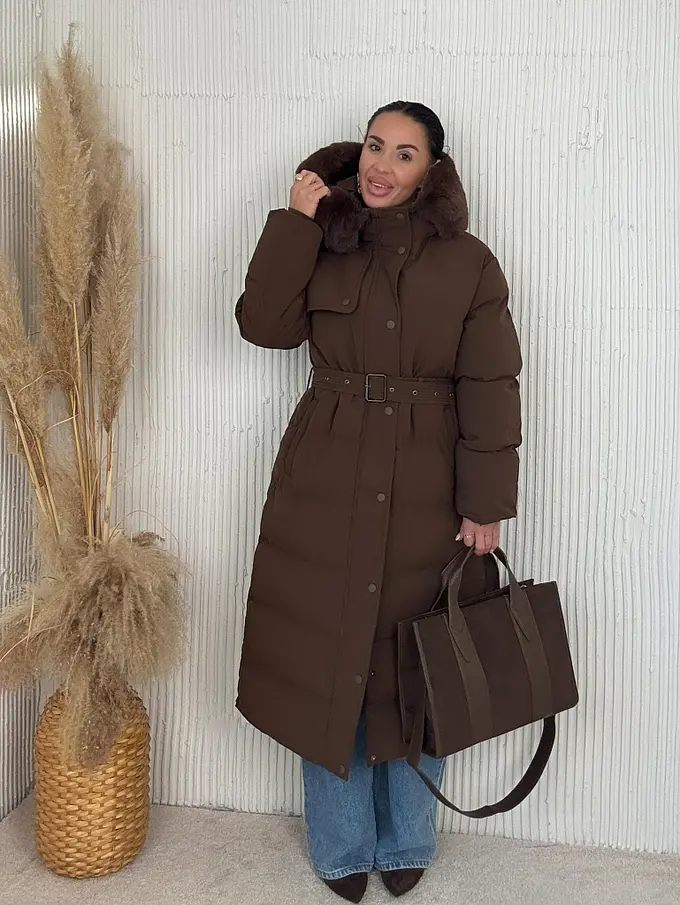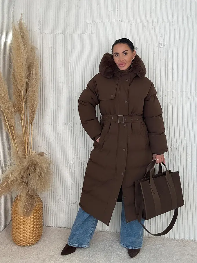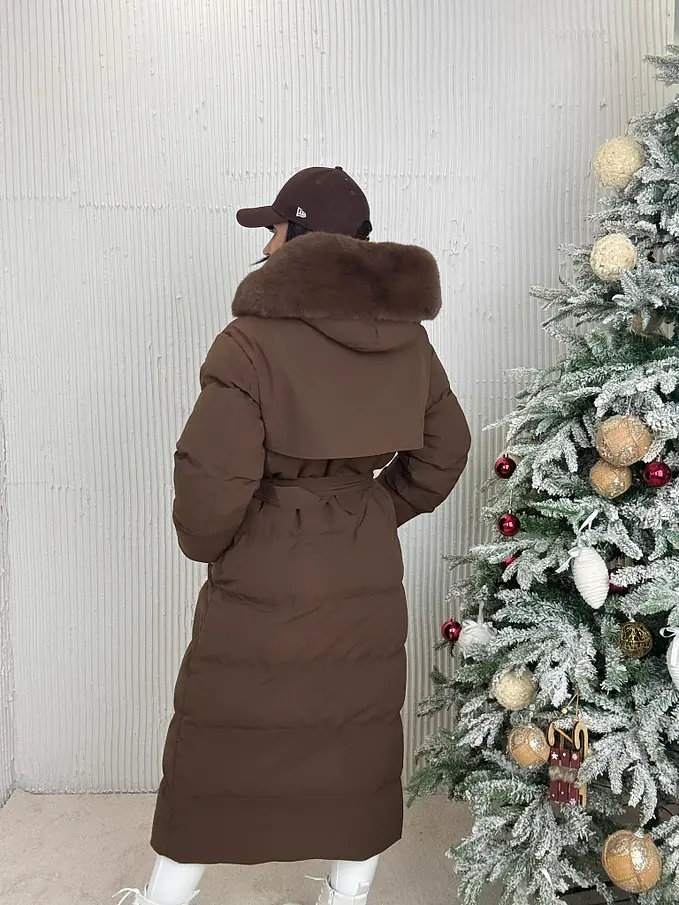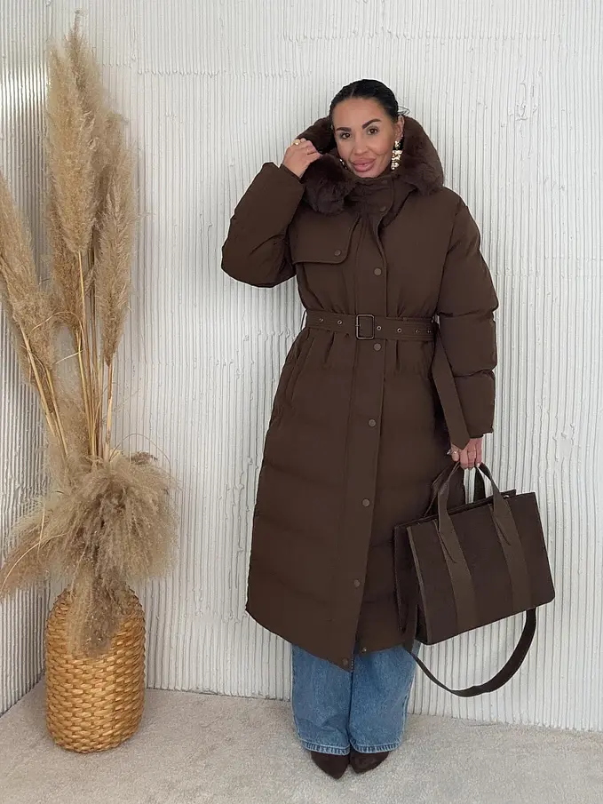 Dlhá bunda s kožušinou a kapucňou NESIA