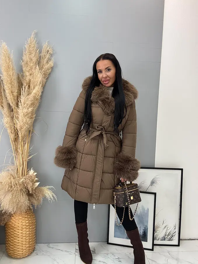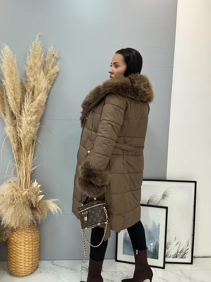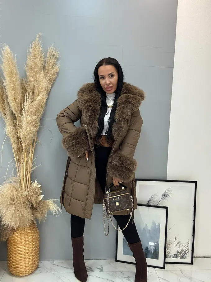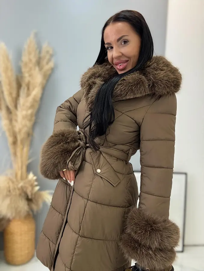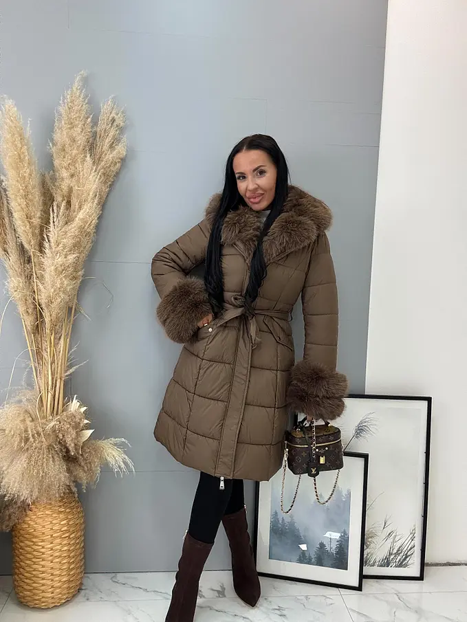 Dlhá bunda s kožušinou a opaskom LAUNA