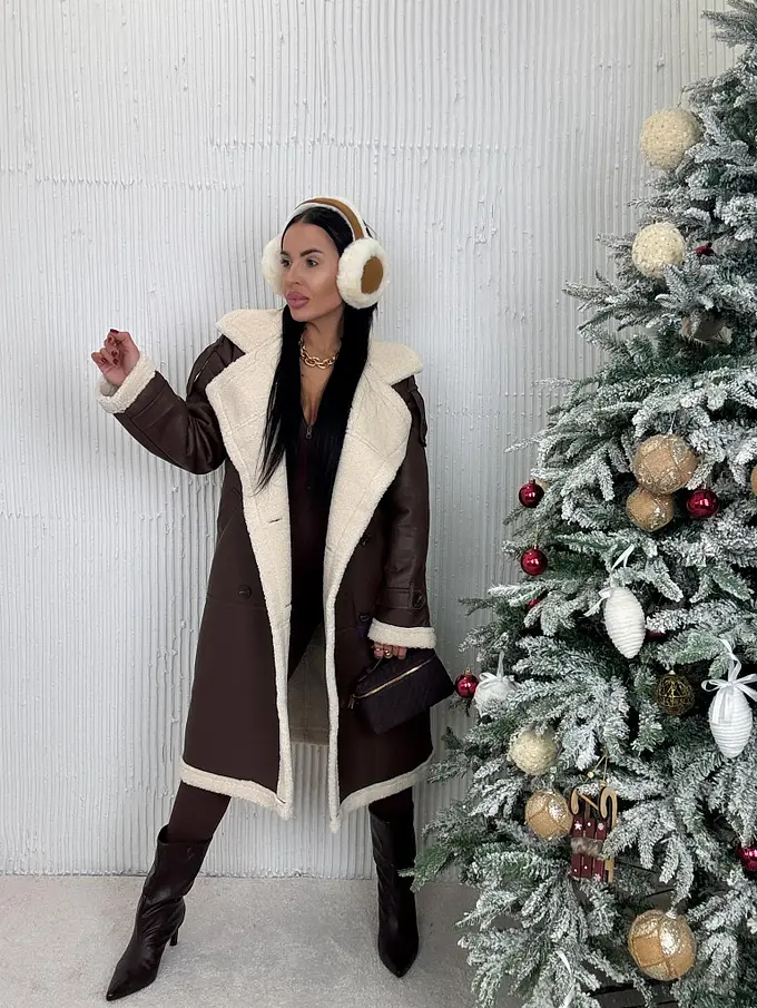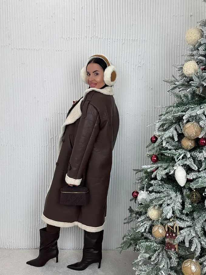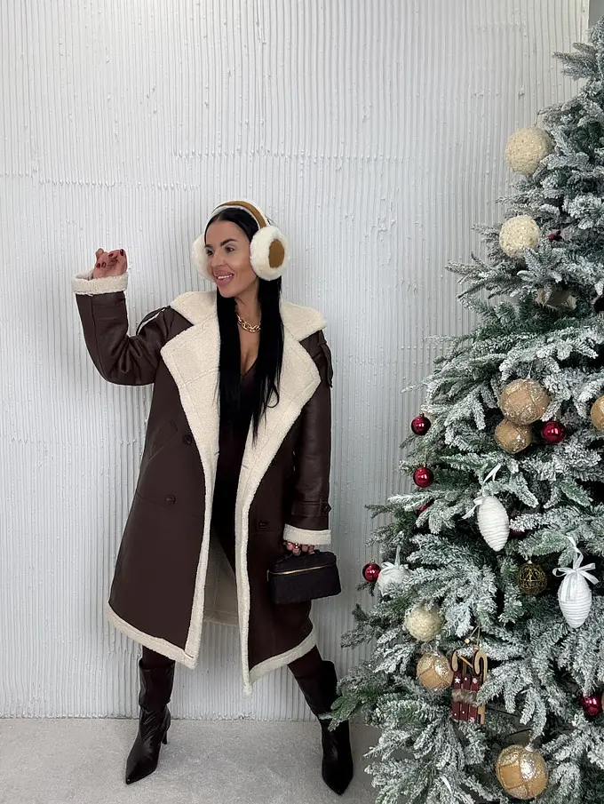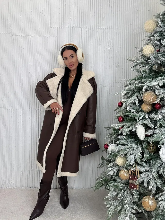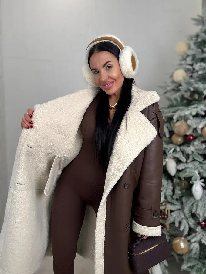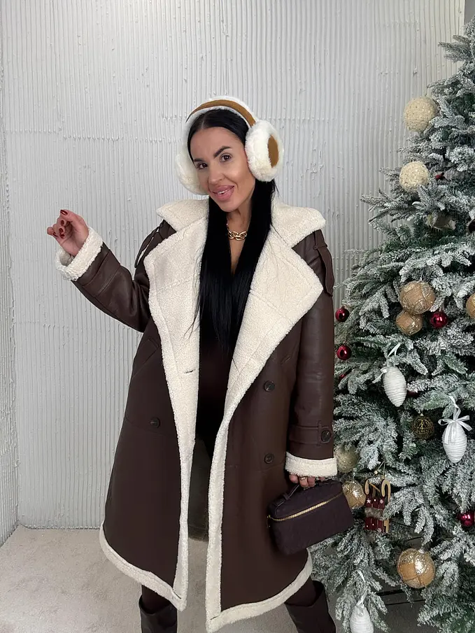Kožená bunda s neodnímateľným kožušinovým lemom na golieri a rukávoch. Podšitý mäkkým, príjemným kožúškom. Detaily sú v hnedej farbe. S bočnými vreckami.