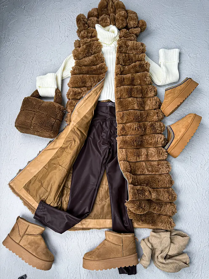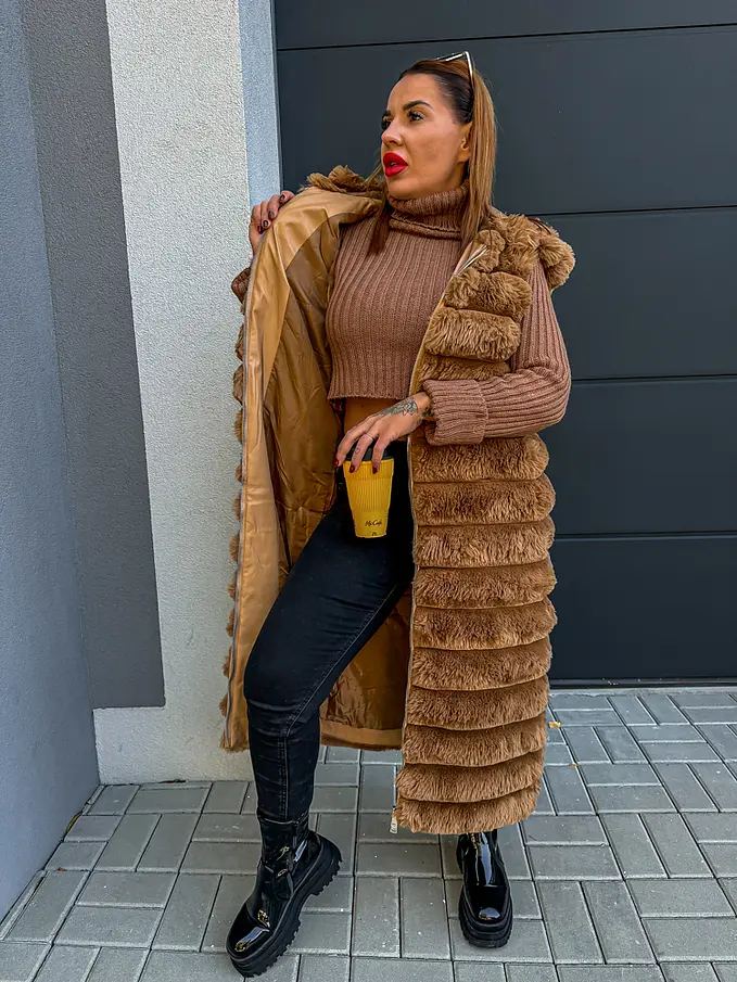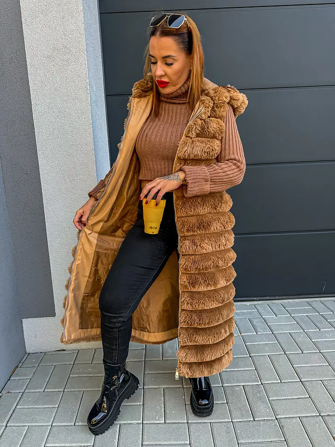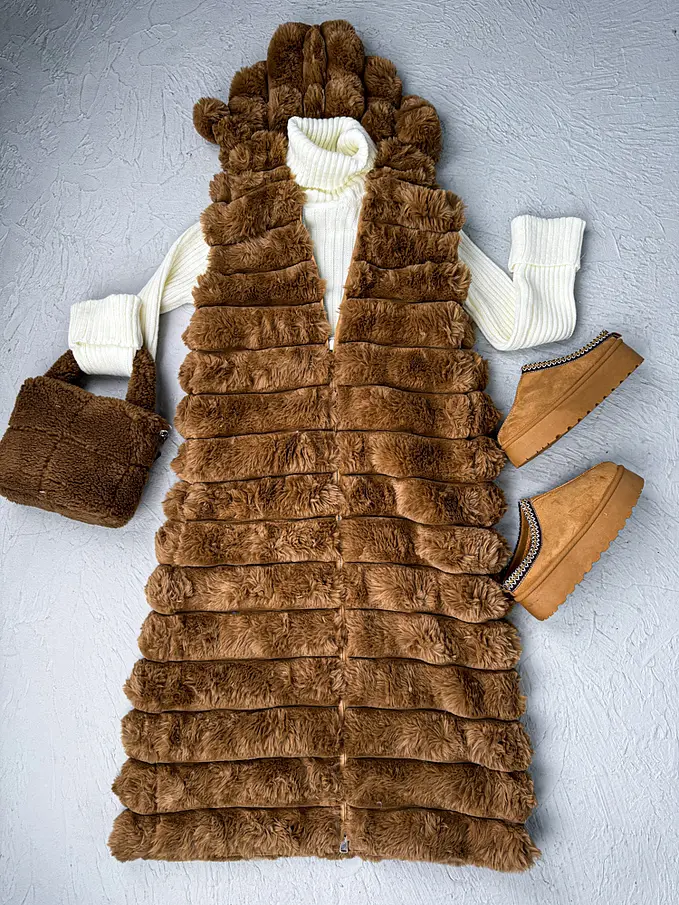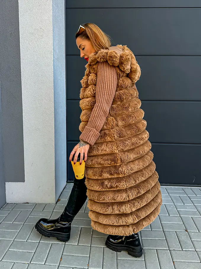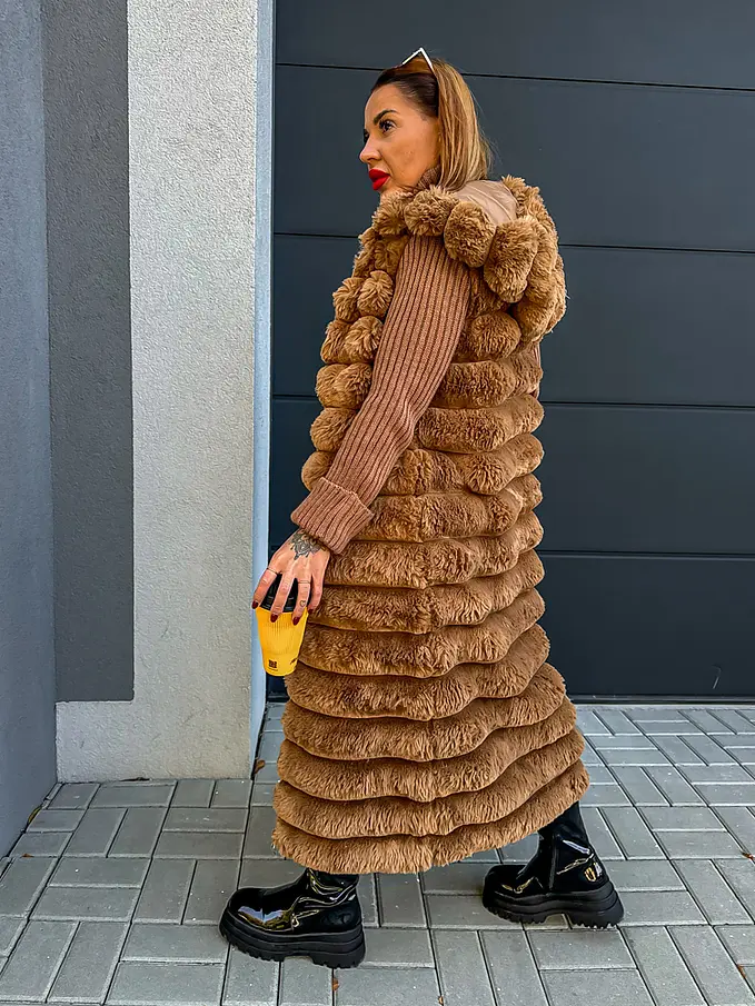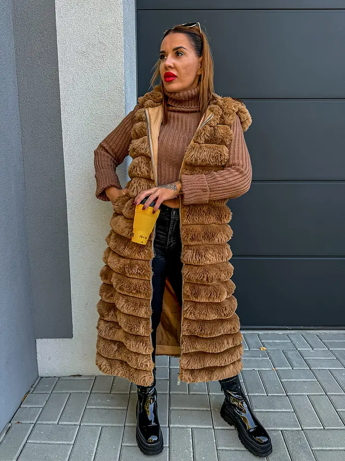 Dlhá kožušinová vesta s kapucňou SHARNEL+