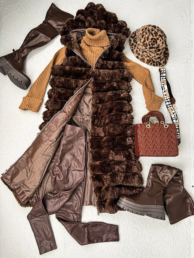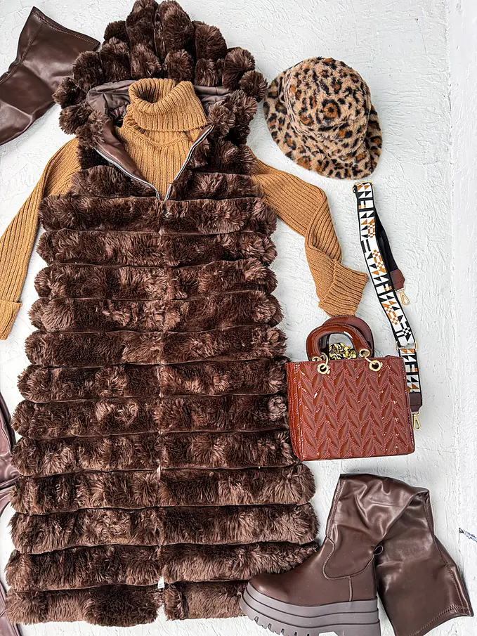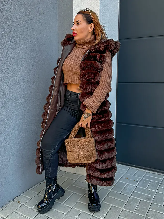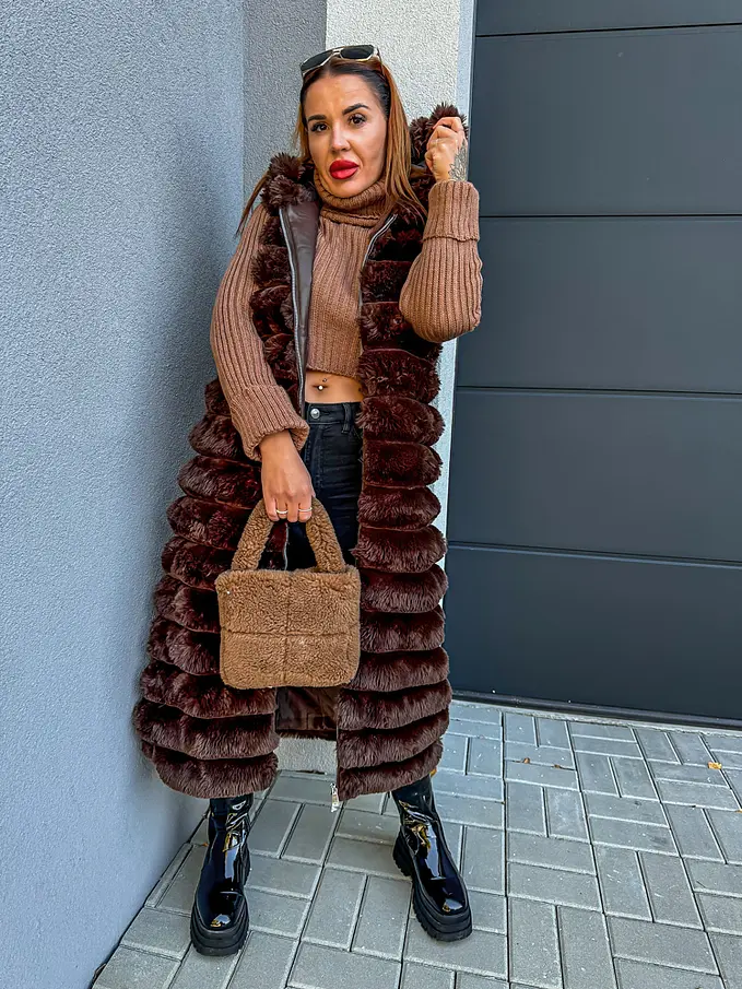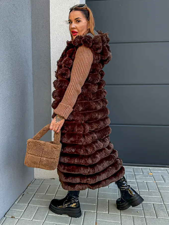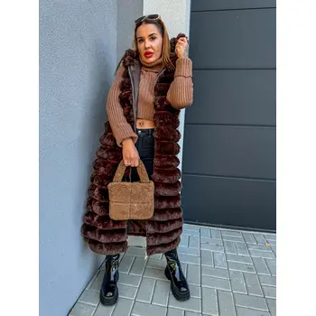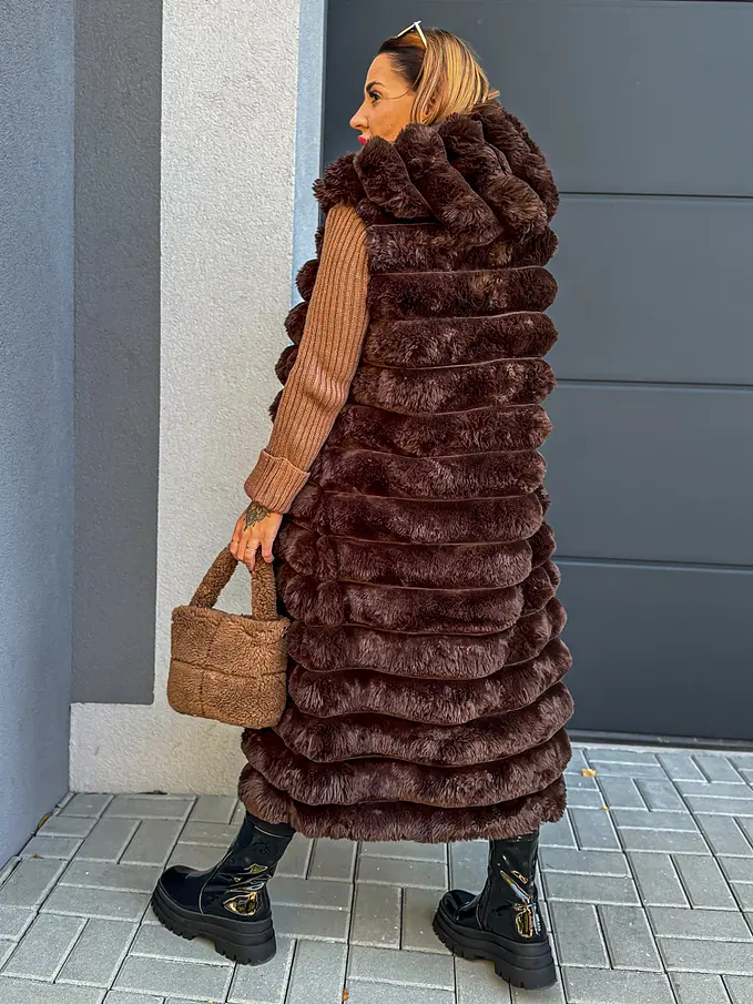 Dlhá kožušinová vesta s kapucňou SHARNEL+