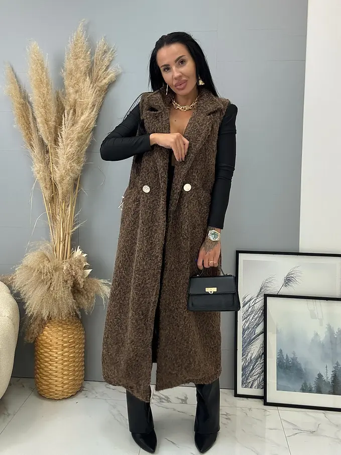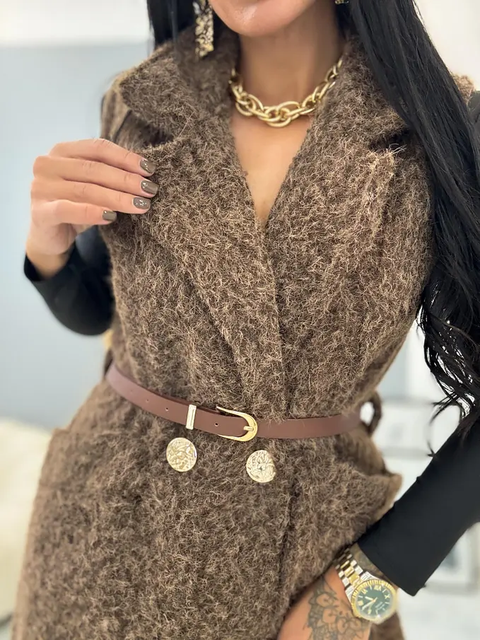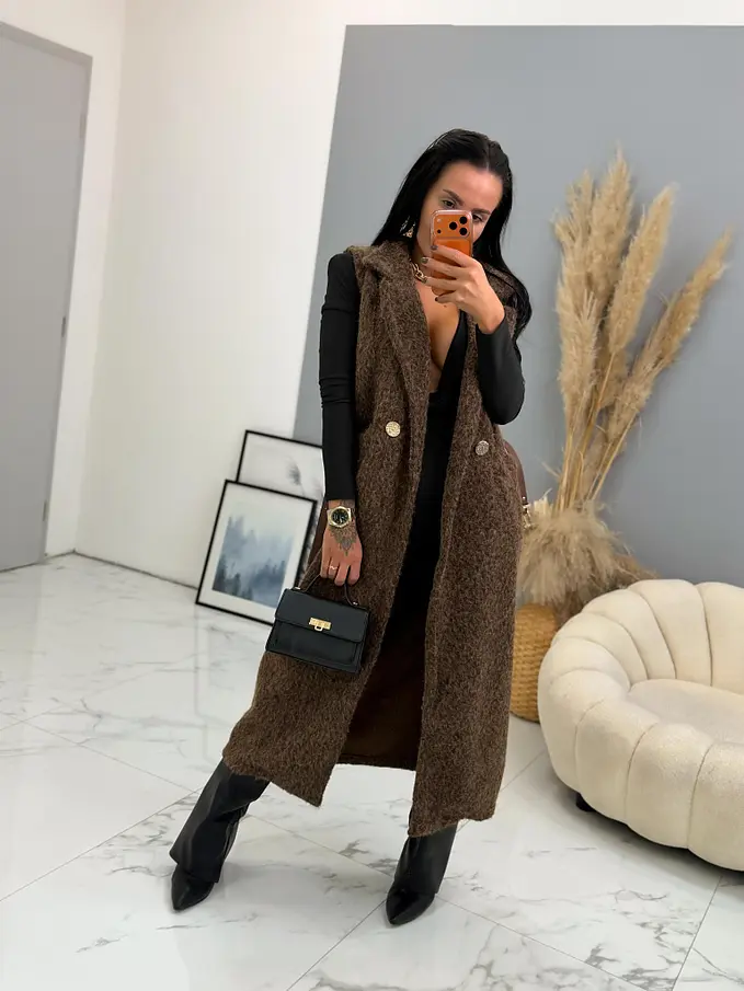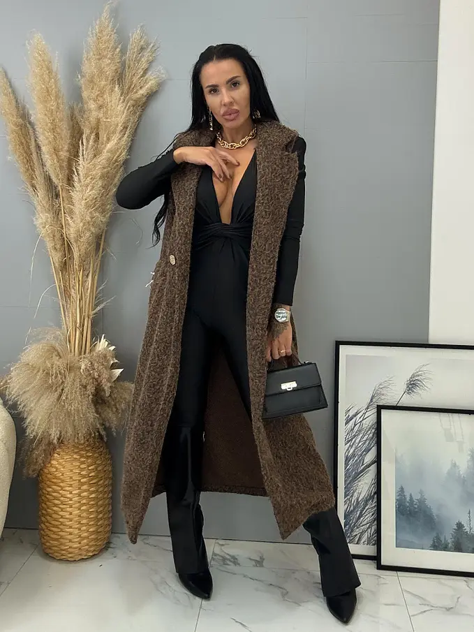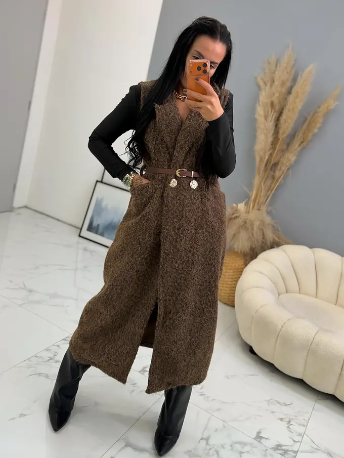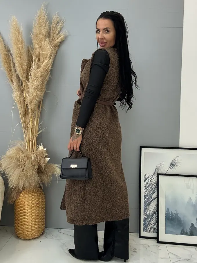 Dlhá uzlíková vesta s opaskom BERTIE