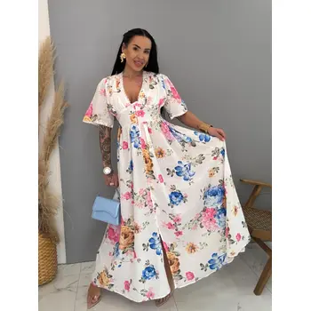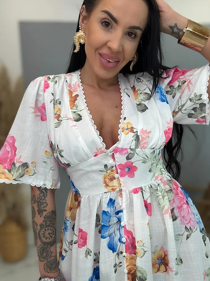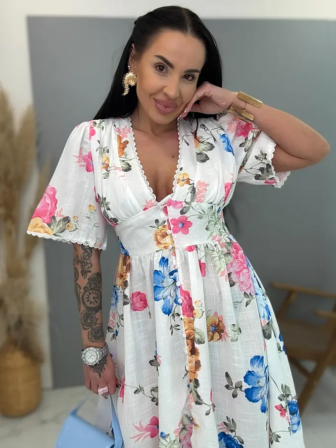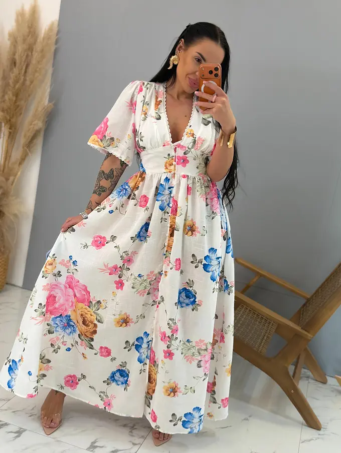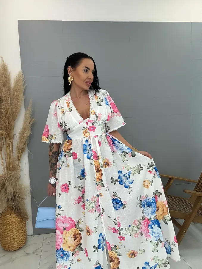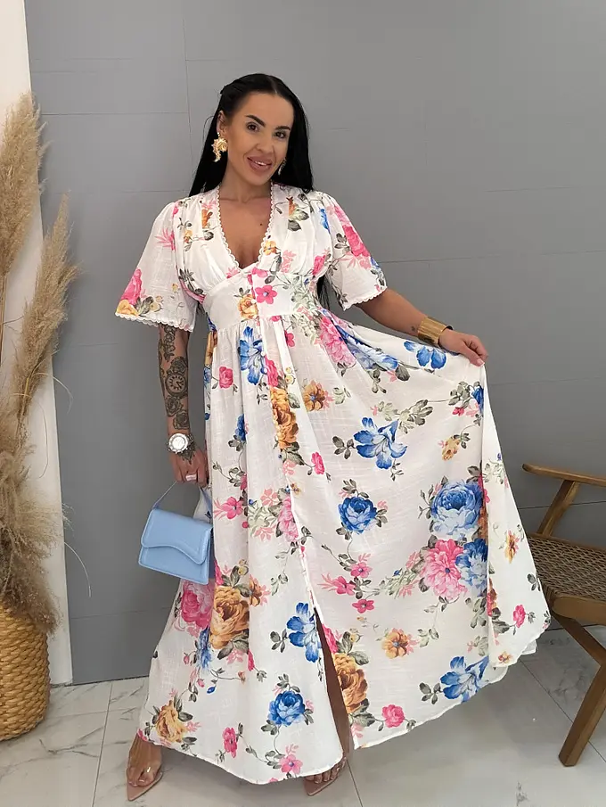 Dlhé kvetované šaty na gombíky SPRING