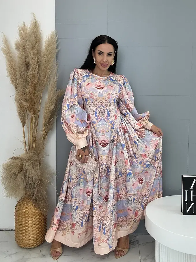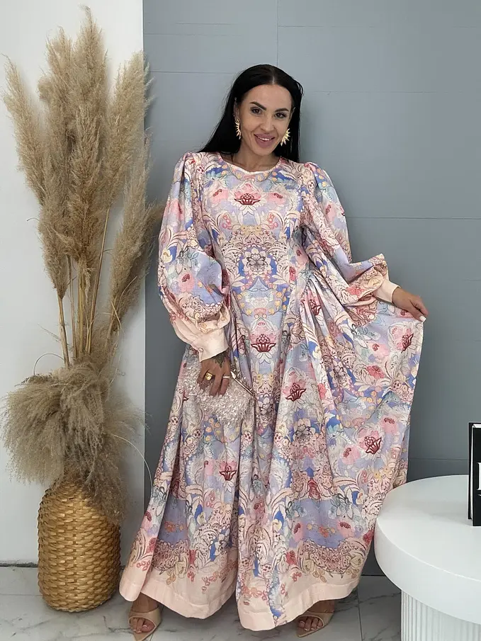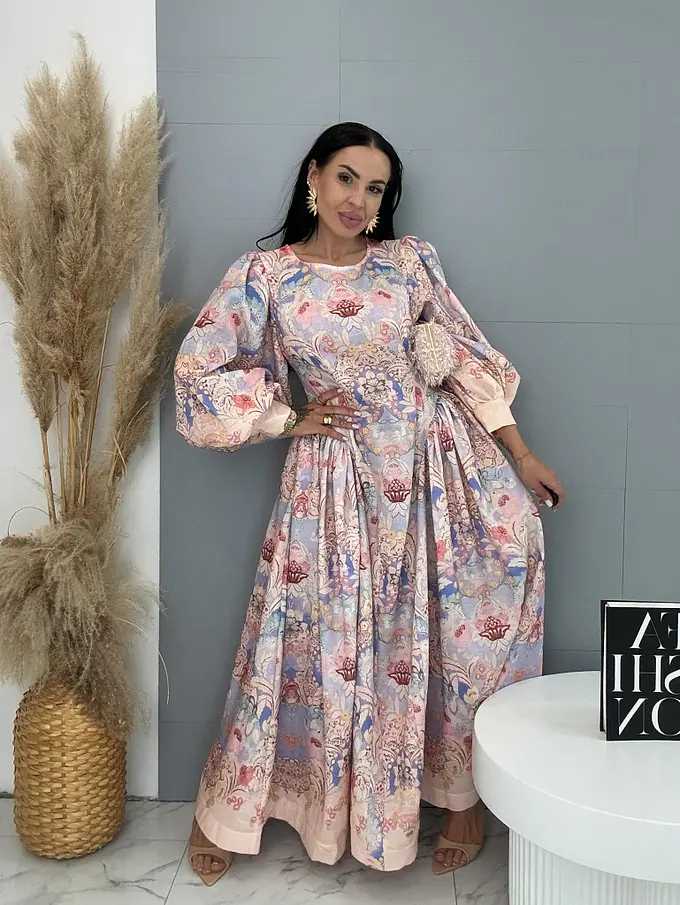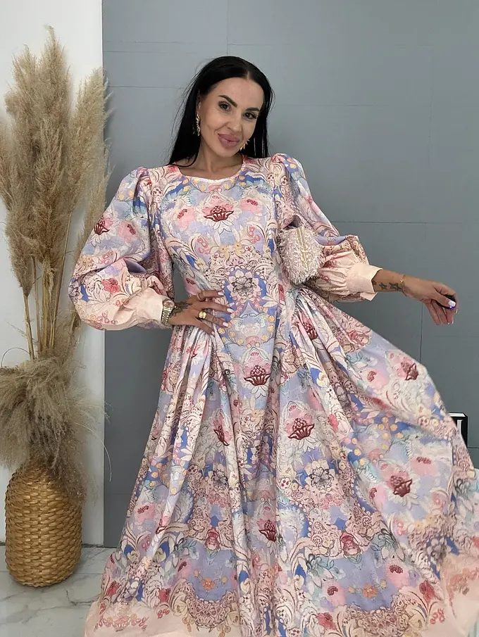 Dlhé kvetované šaty s balónovým rukávom JULIA