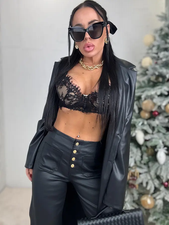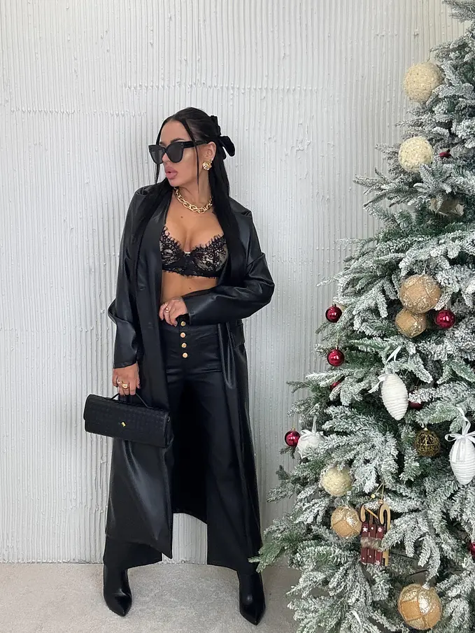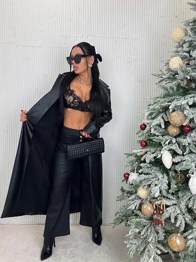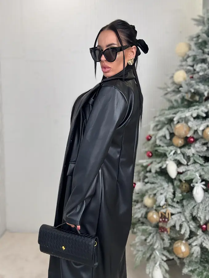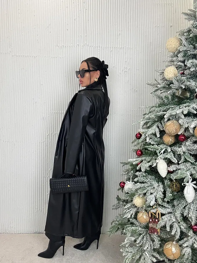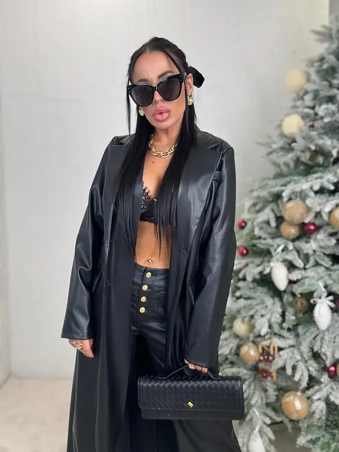 Dlhý koženkový kabát SAVIRA