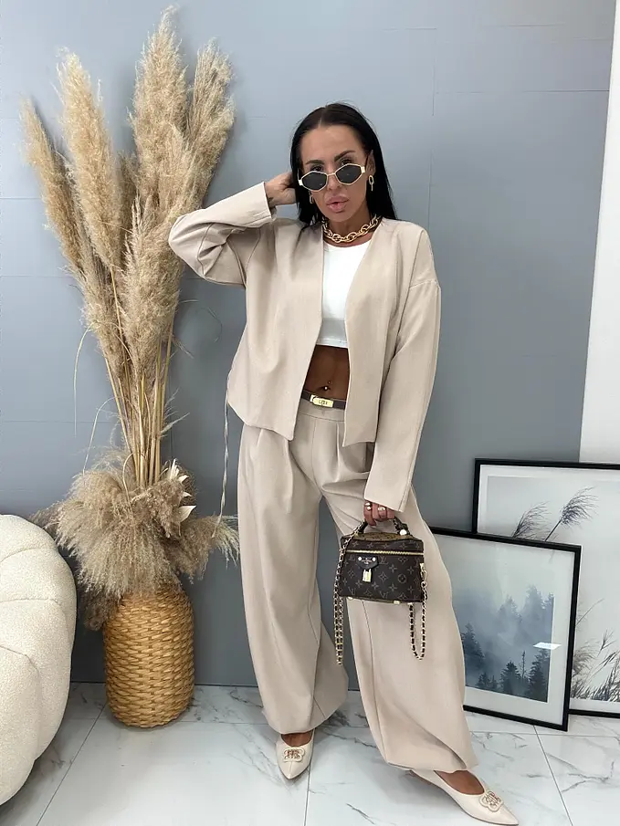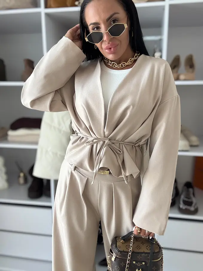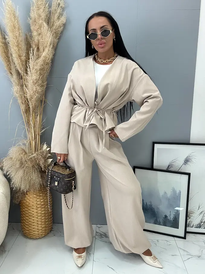 Dámský komplet z novej kolekcie. Pozozstáva z sveter a nohavíc. Materiál je príjemný, elastický. Nohavice s gumeným pásom.