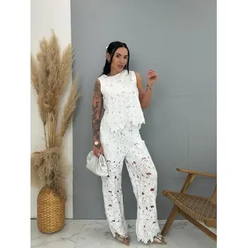 Prémium kvalita, priamo z Francúzska. Elegantný a pohodlný komplet, ktorý sa pozostáva z blúzky a nohavíc. Materiál je príjemný ľahký. Bez opasky.