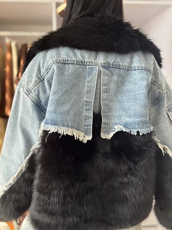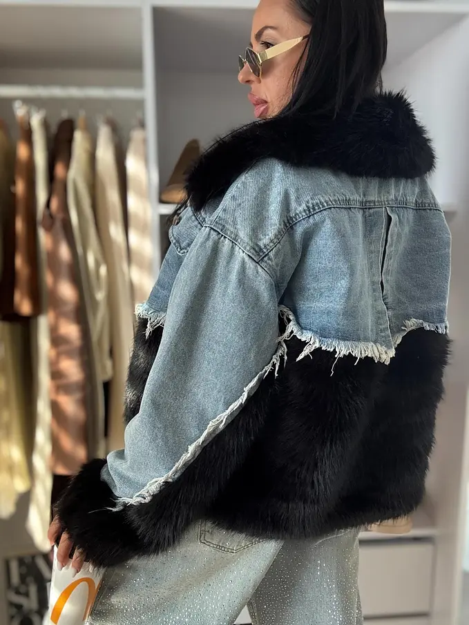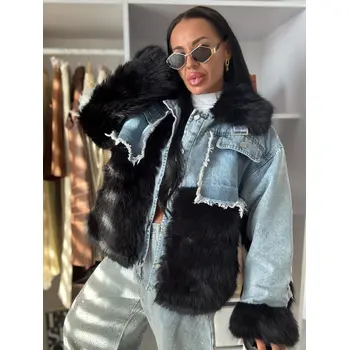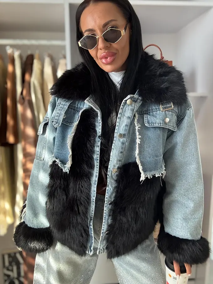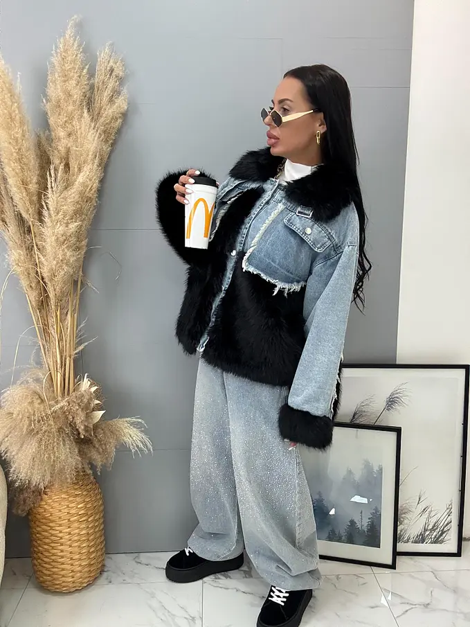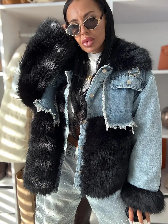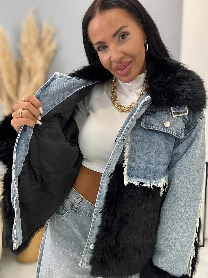 Štýlová na každý deň! Moderný kabát je výrazná vďaka strihu.Bunda je zateplená. Kožušina je neodnímateľná. Zapínanie na strieborné gombíky.
