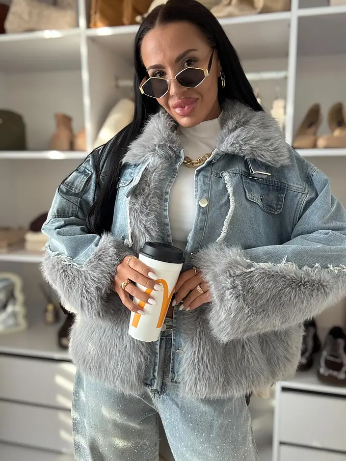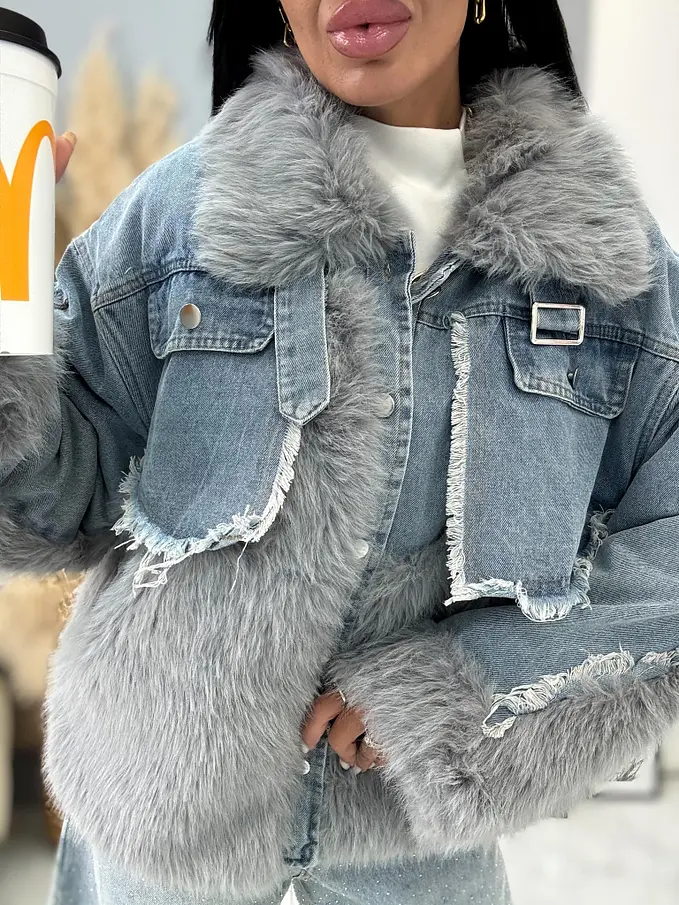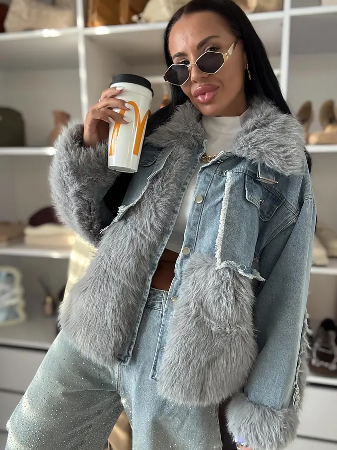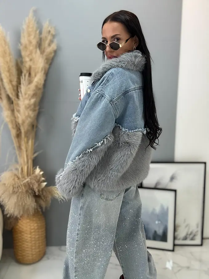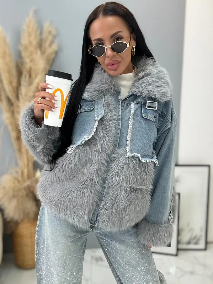 Štýlová na každý deň! Moderný kabát je výrazná vďaka strihu.Bunda je zateplená. Kožušina je neodnímateľná. Zapínanie na strieborné gombíky.