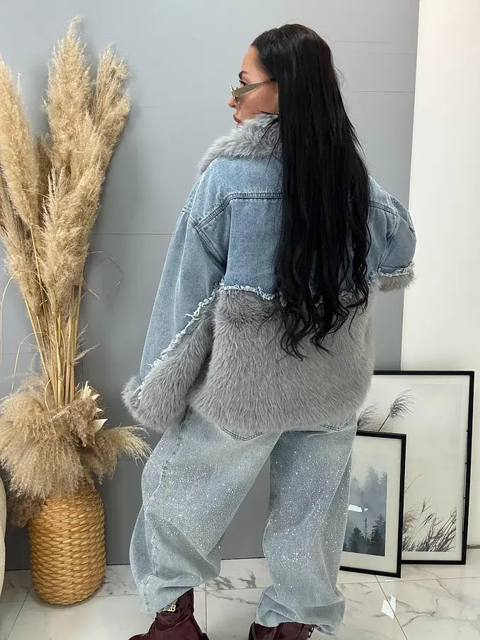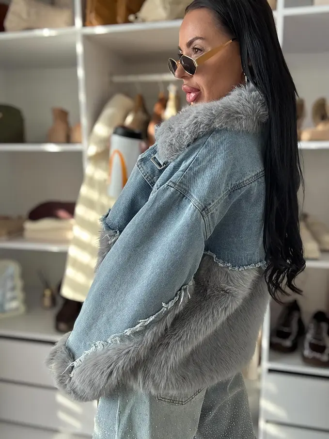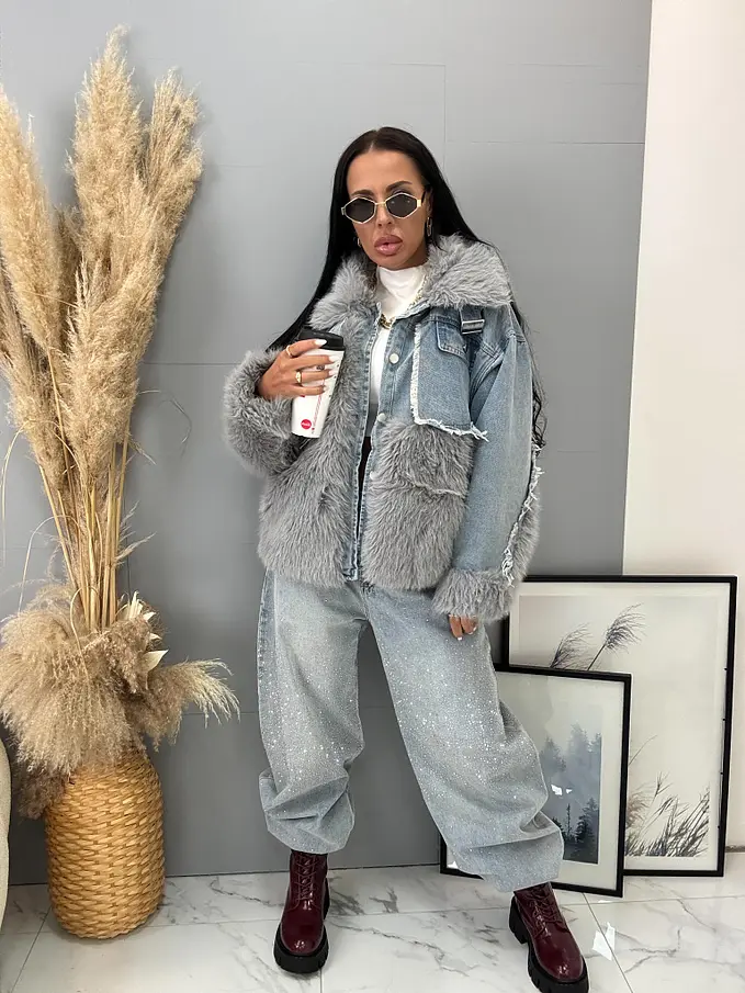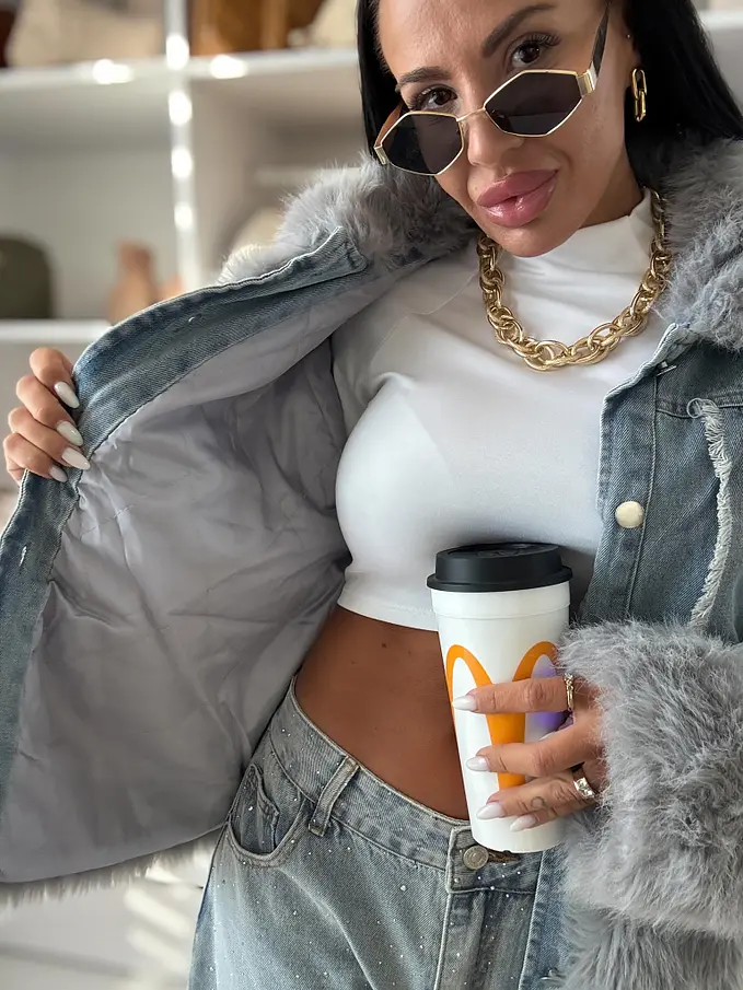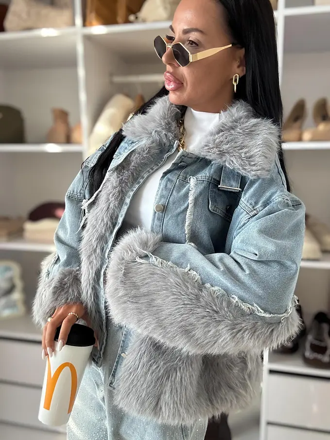 Štýlová na každý deň! Moderný kabát je výrazná vďaka strihu.Bunda je zateplená. Kožušina je neodnímateľná. Zapínanie na strieborné gombíky.