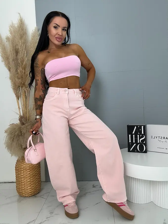 Moderné a pohodlné nohavice s balónovým strihom, ktoré poskytujú trendy vzhľad a voľnú siluetu. Širší strih zabezpečuje komfort pri nosení, pričom zároveň vytvára štýlový a ženský outfit.