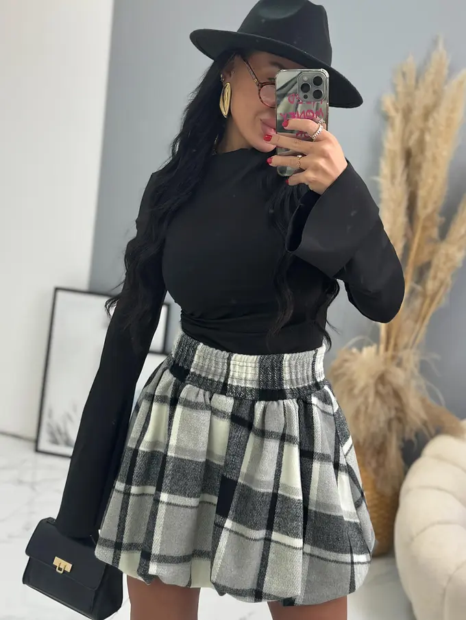 Modelka čiernovláska meria 164 cm a váži 57 kg.