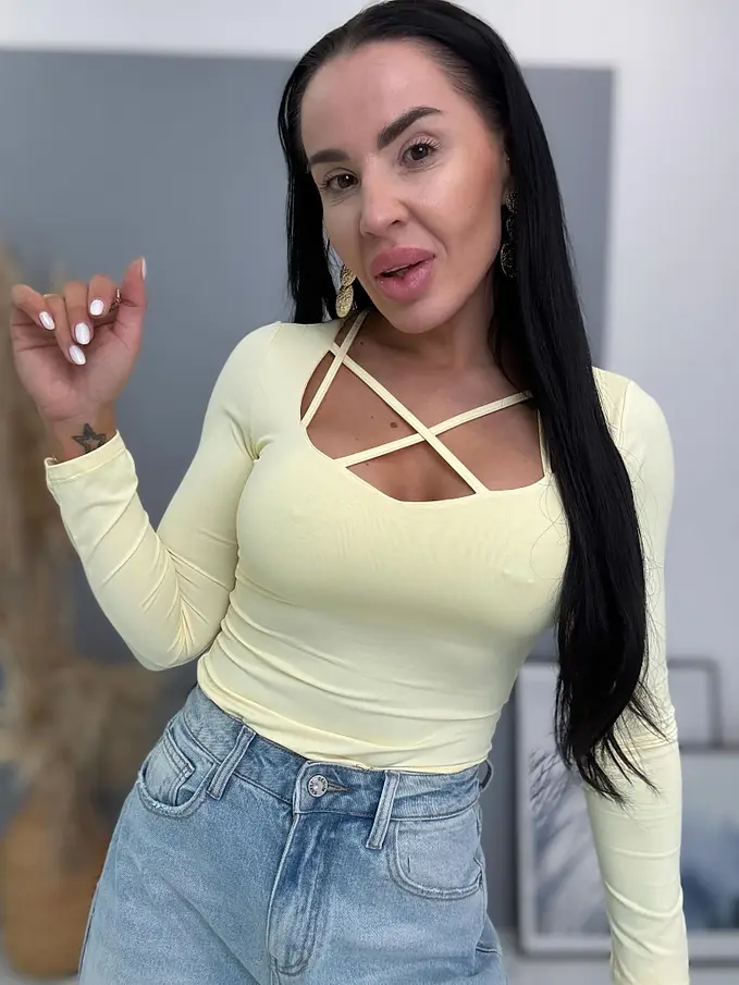 Modelka čiernovláska meria 164 cm a váži 57 kg.