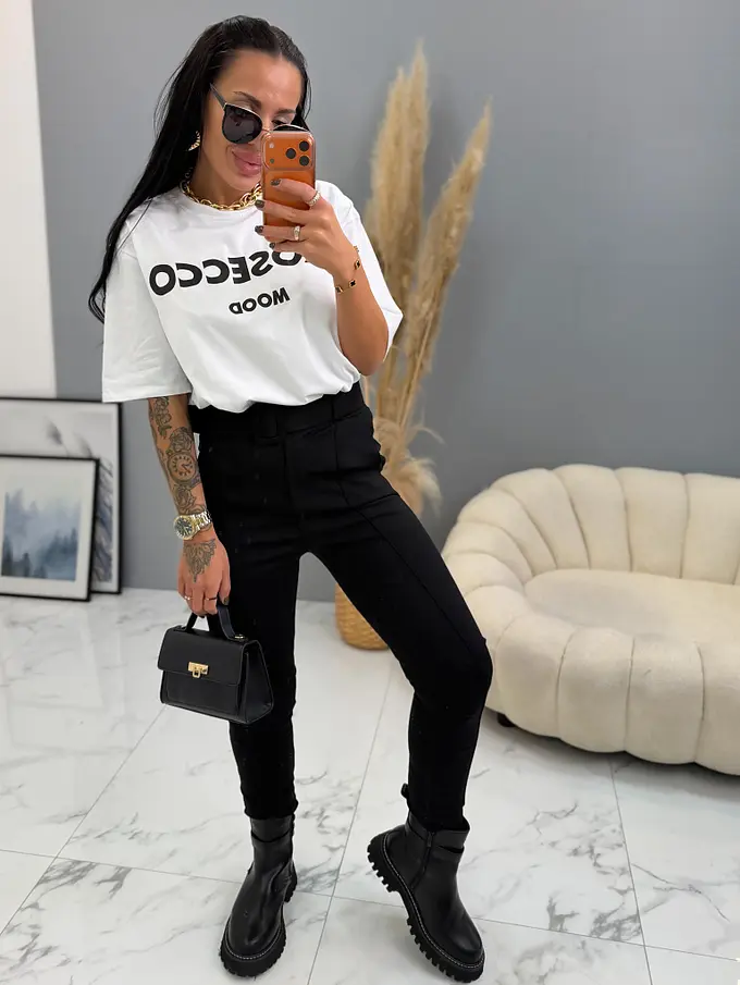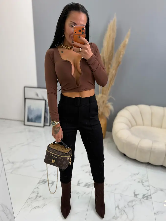 Modelka meria 164 cm a váží 57 kg. Nosí veľkosť S