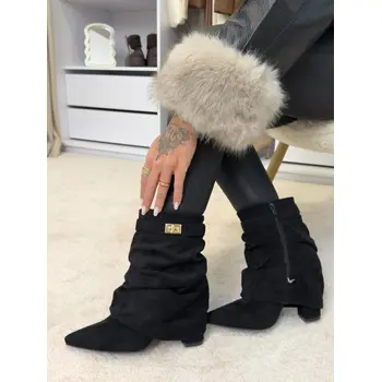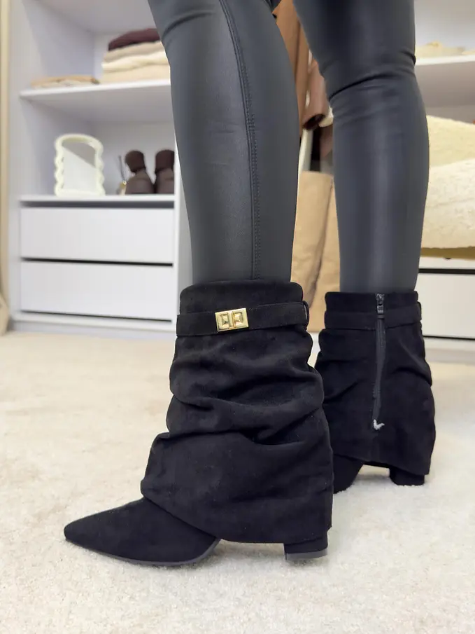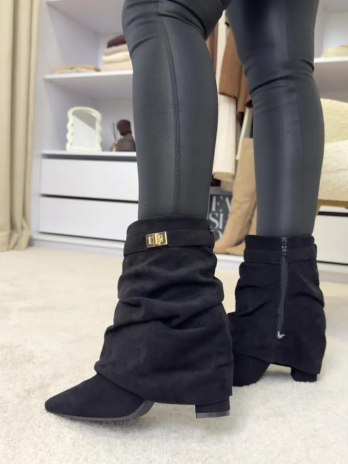 Čižmy sú mierne zateplené. Ozdoba má zlatú farbu.