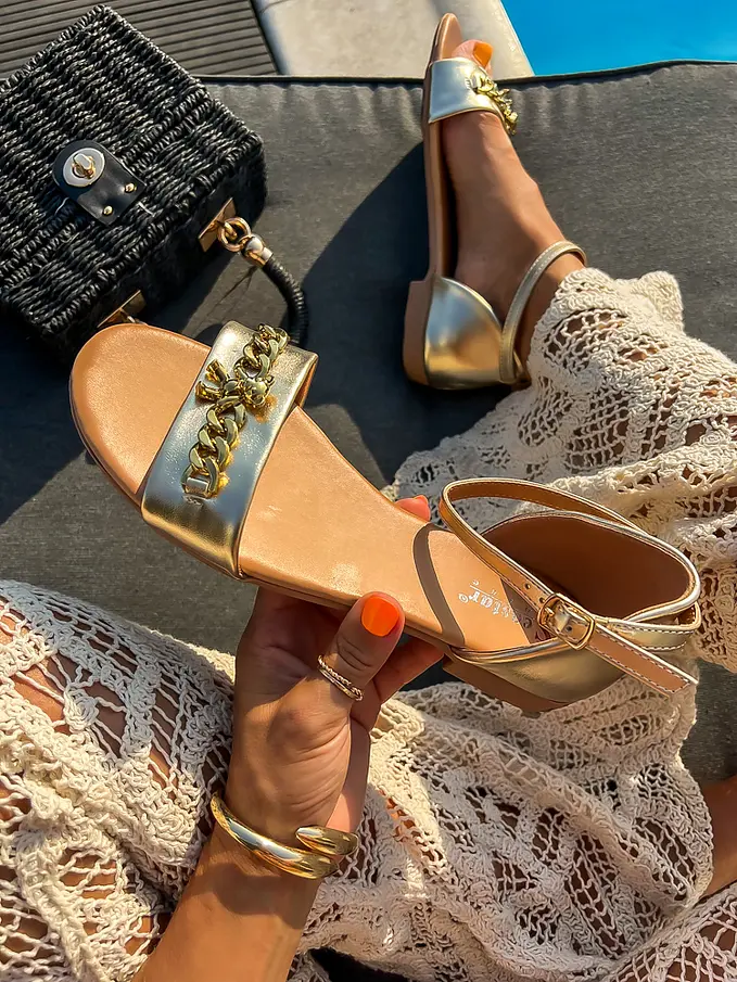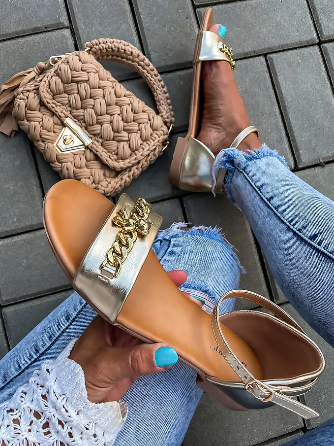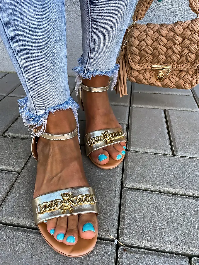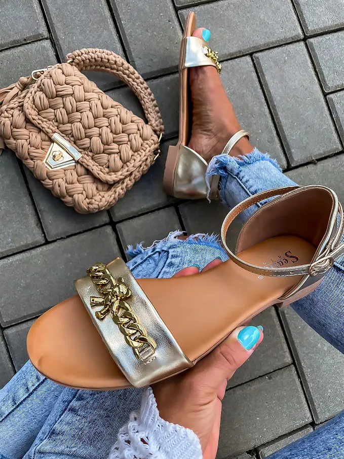 Elegantné sandále so zlatou ozdobou ROSALYN-