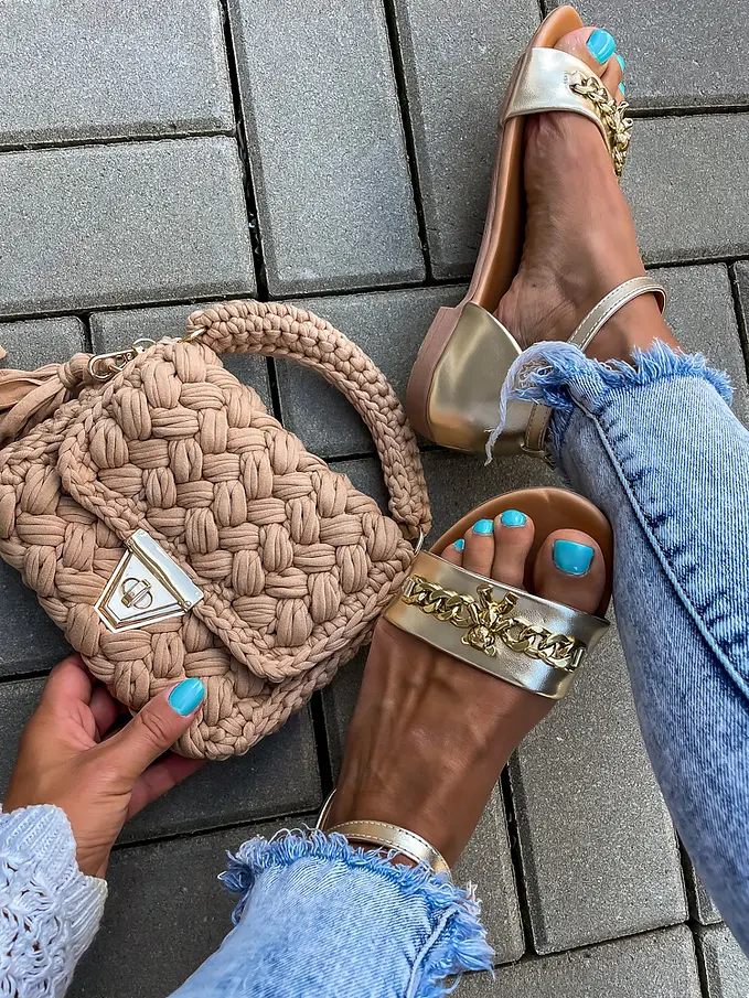 Elegantné sandále. Ozdoby majú zlatú farbu.