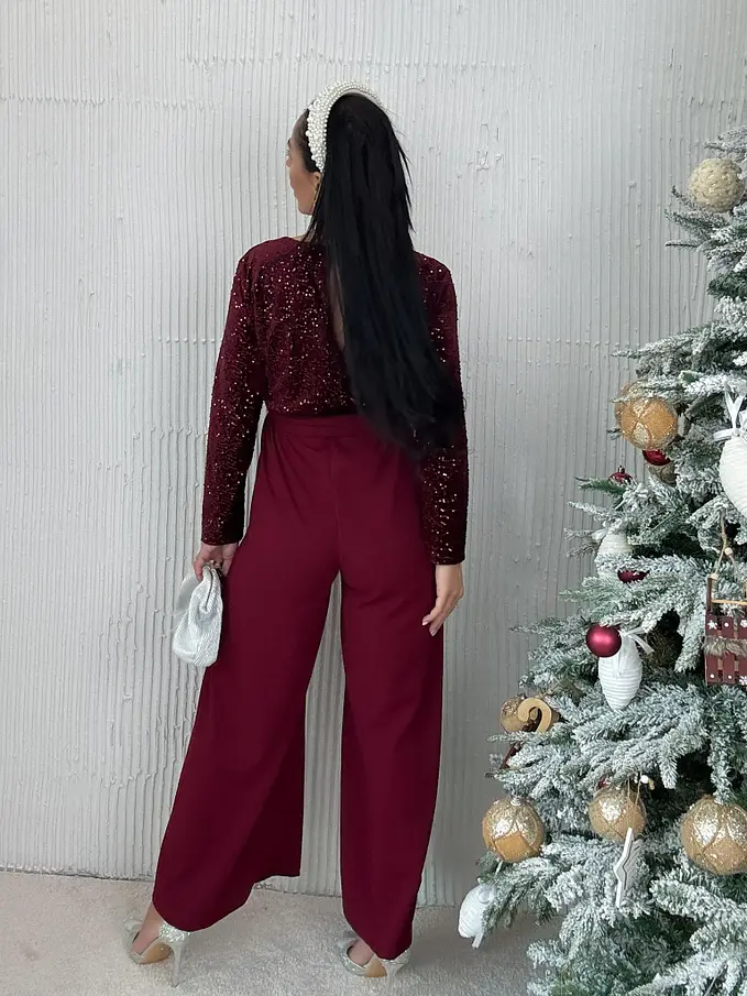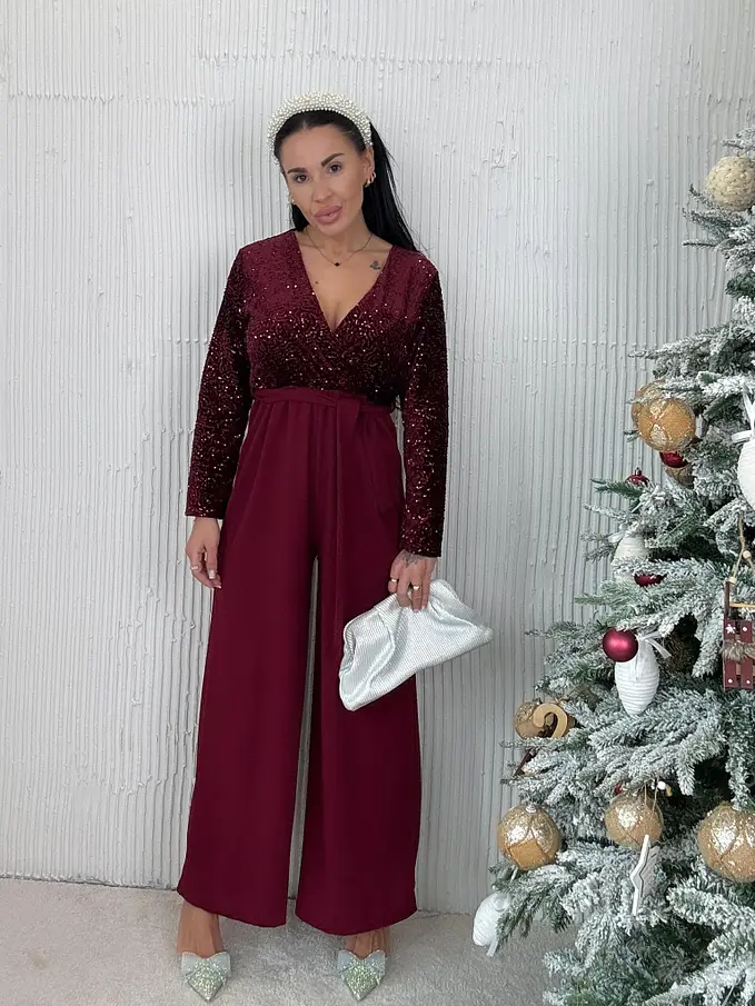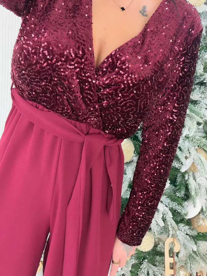 Elegantný overal zdobený flitrami s opaskom FABIOLA