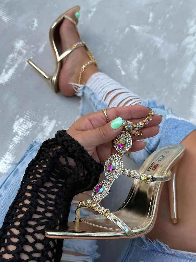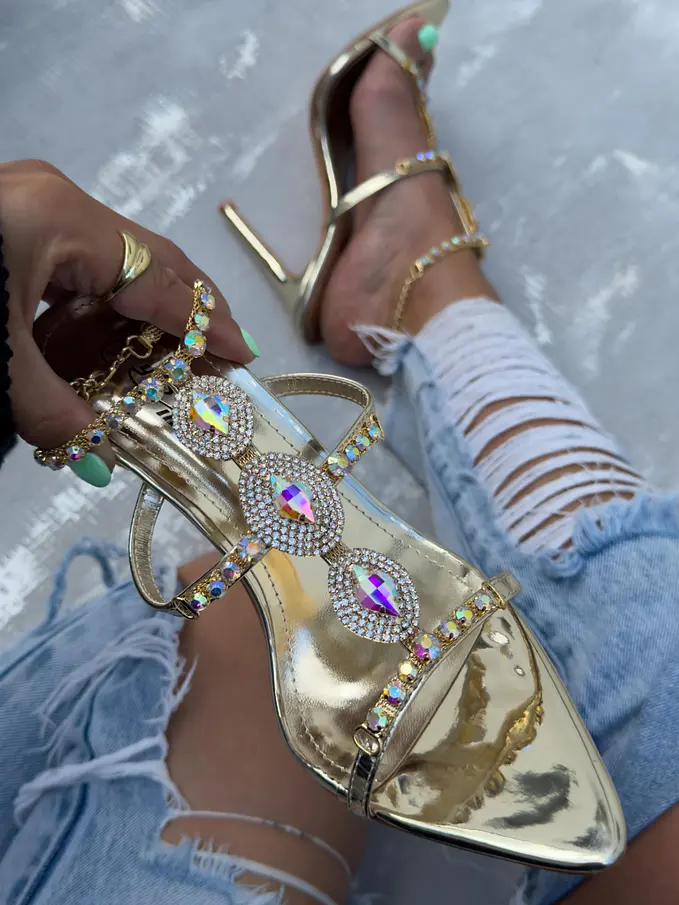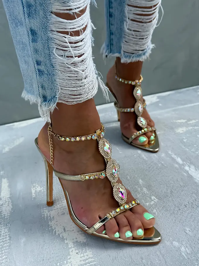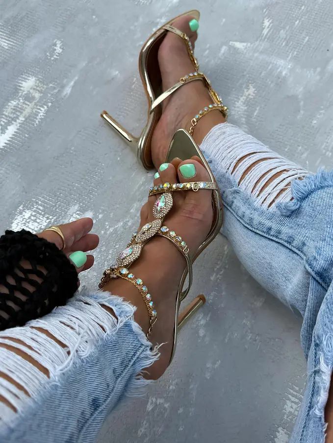Exkluzívne sandále zdobené kamienkami a reťazou NAKIYA-