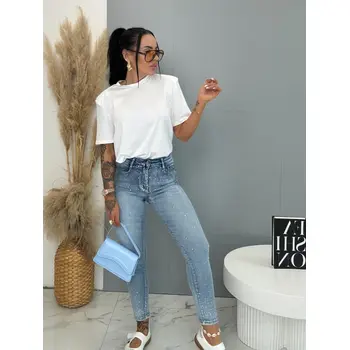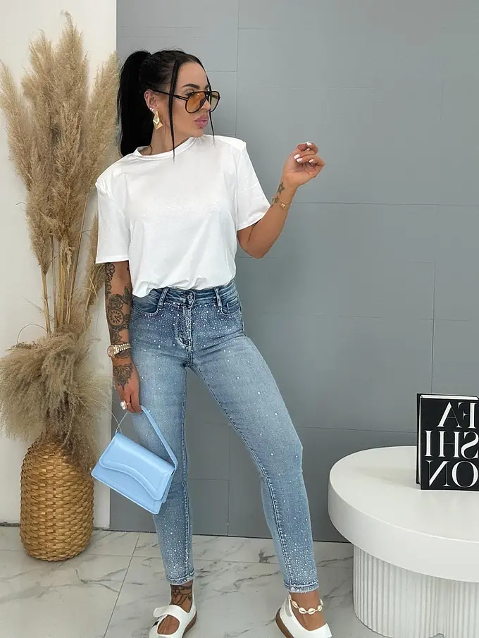 Extra elastické push-up prémium džínsy s vysokým pásom a kamienkami