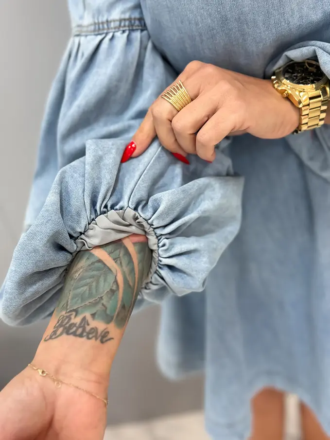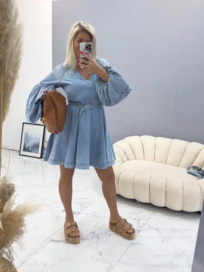 Premium kvalita. Ani materiál ani pás nie je elastický. Šaty majú vrecká a zips na chrbáte. Na koncoch rukávov je guma. Modelka mala na sebe veľkosť M/L.