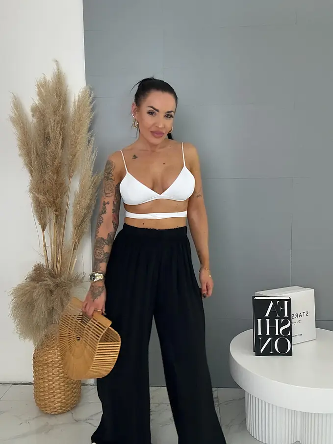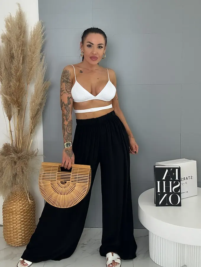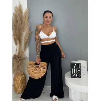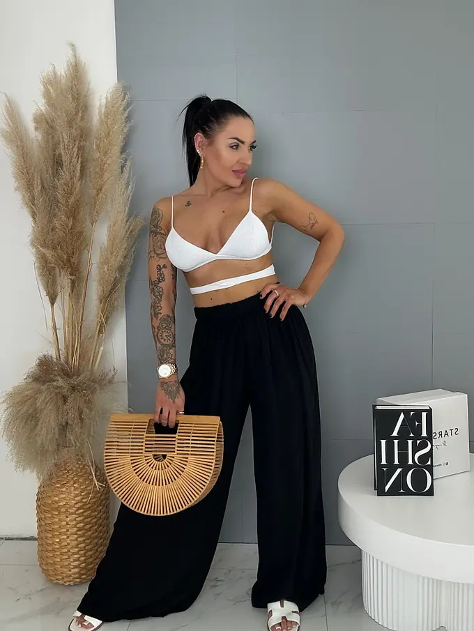 Flowing čierne nohavice s gumeným pásom ARIA