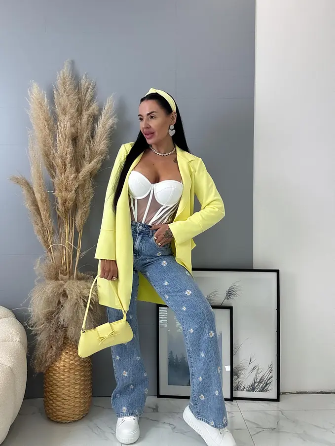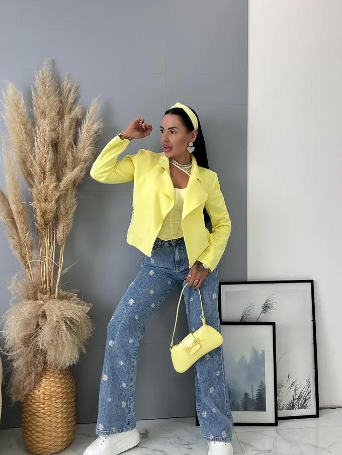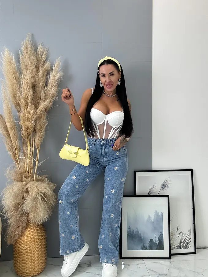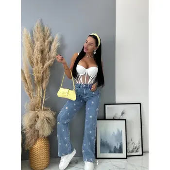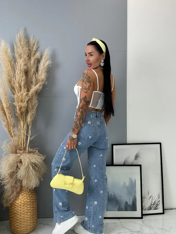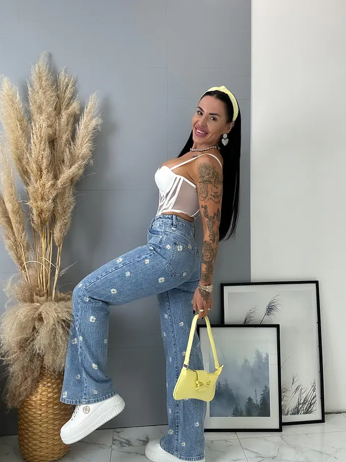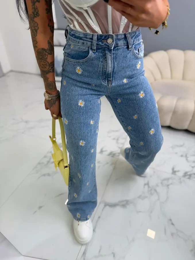 High Waist rifle s výšivkami FLOWERY