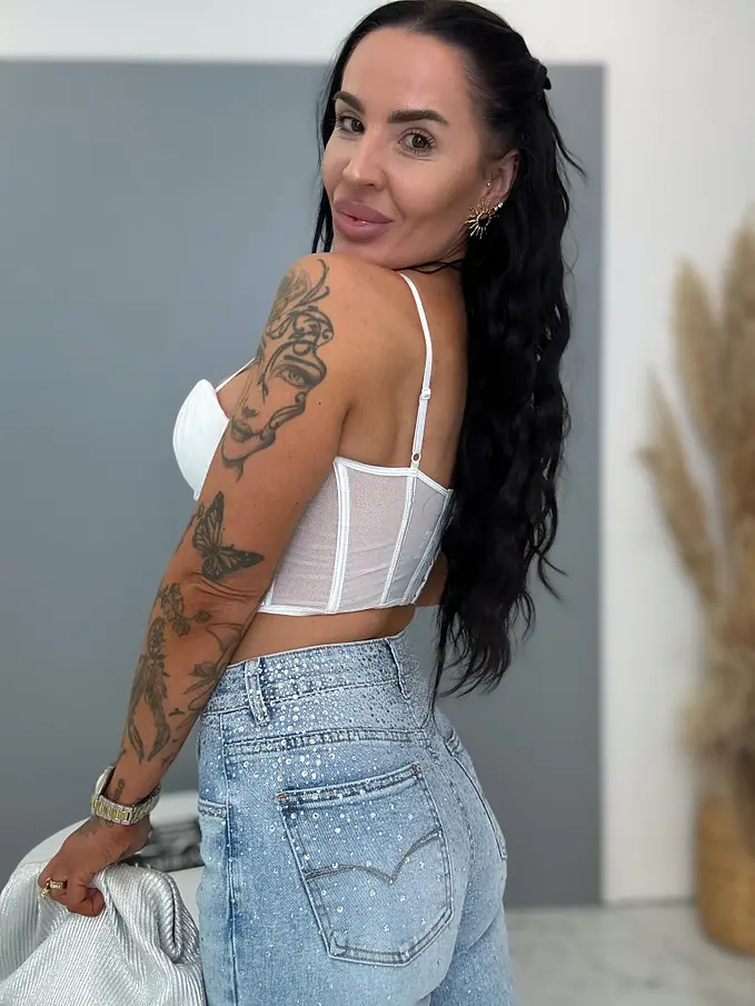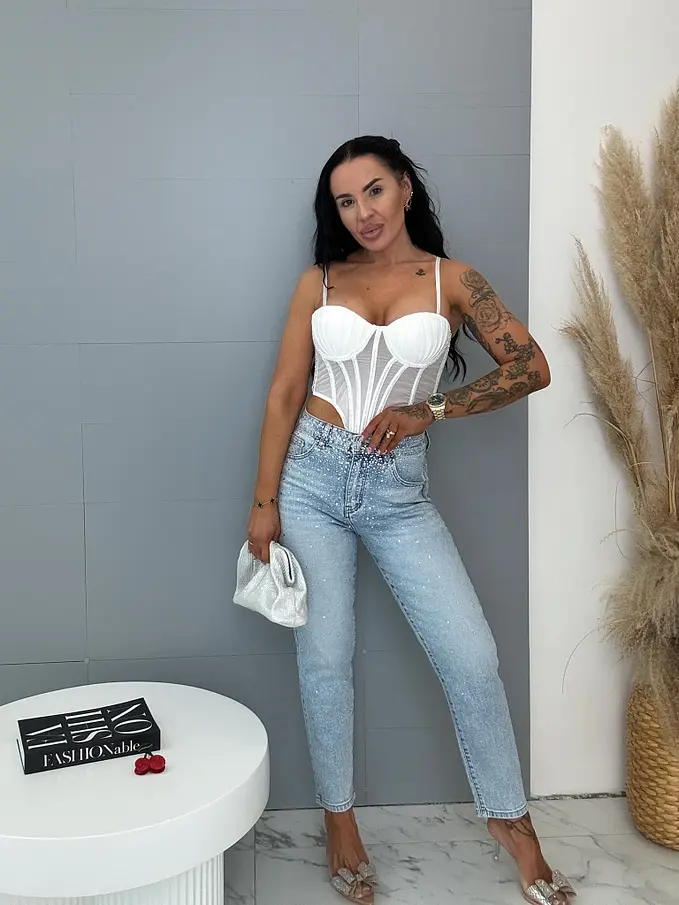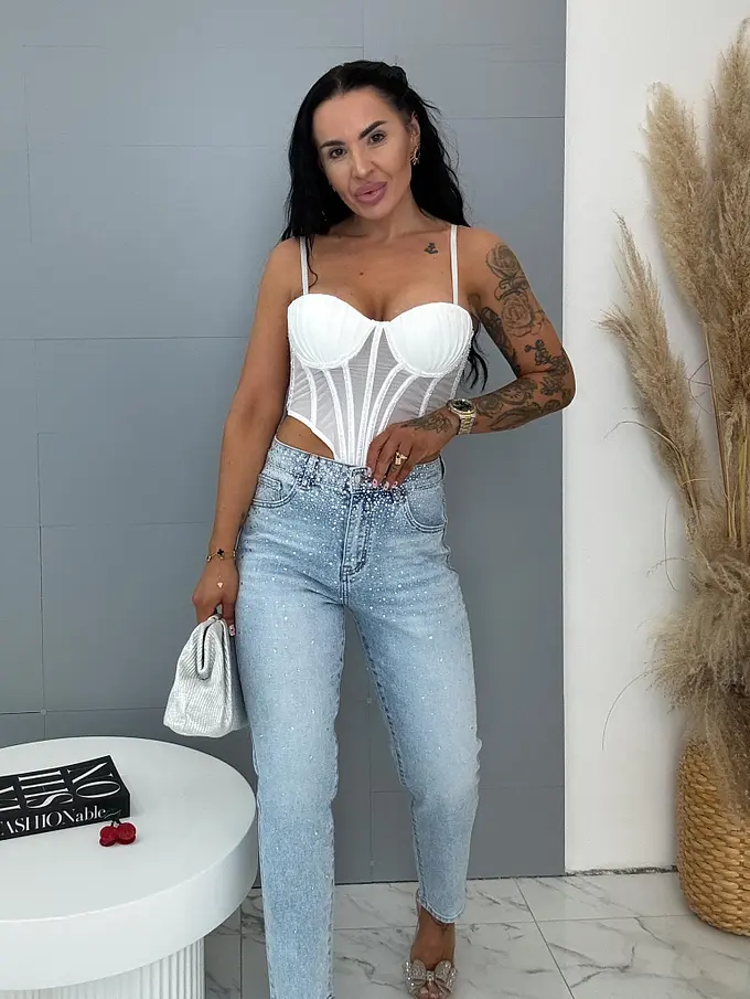 High Waist úplne extra rifle zdobené kamienkami