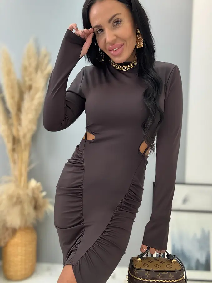 Hnedé šaty s odhaleným chrbtom KATHEA