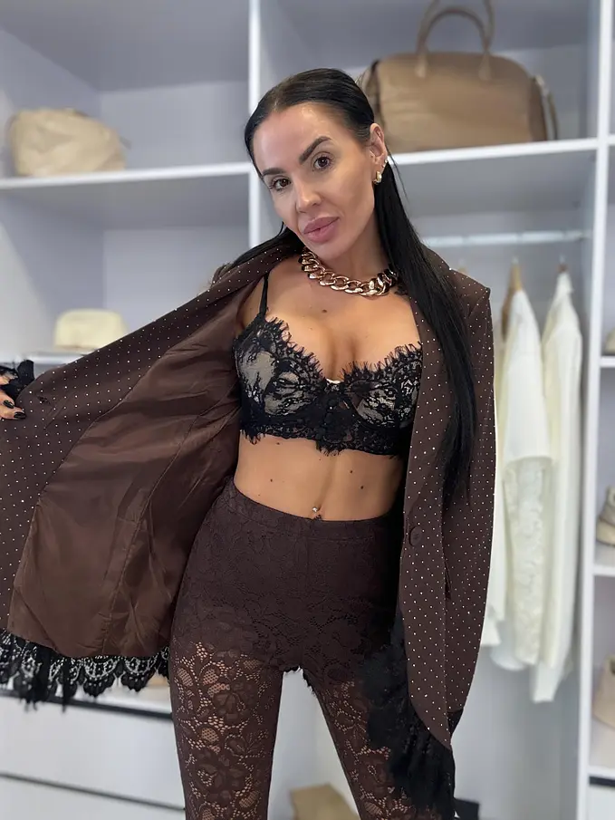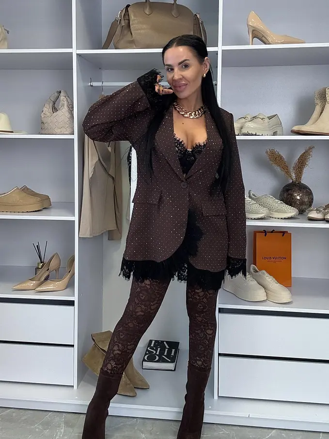 Hnedé trblietavé sako s čipkou SELINA