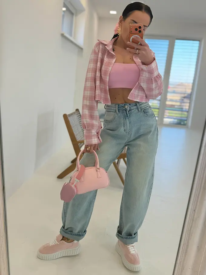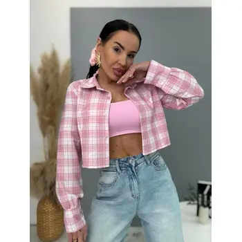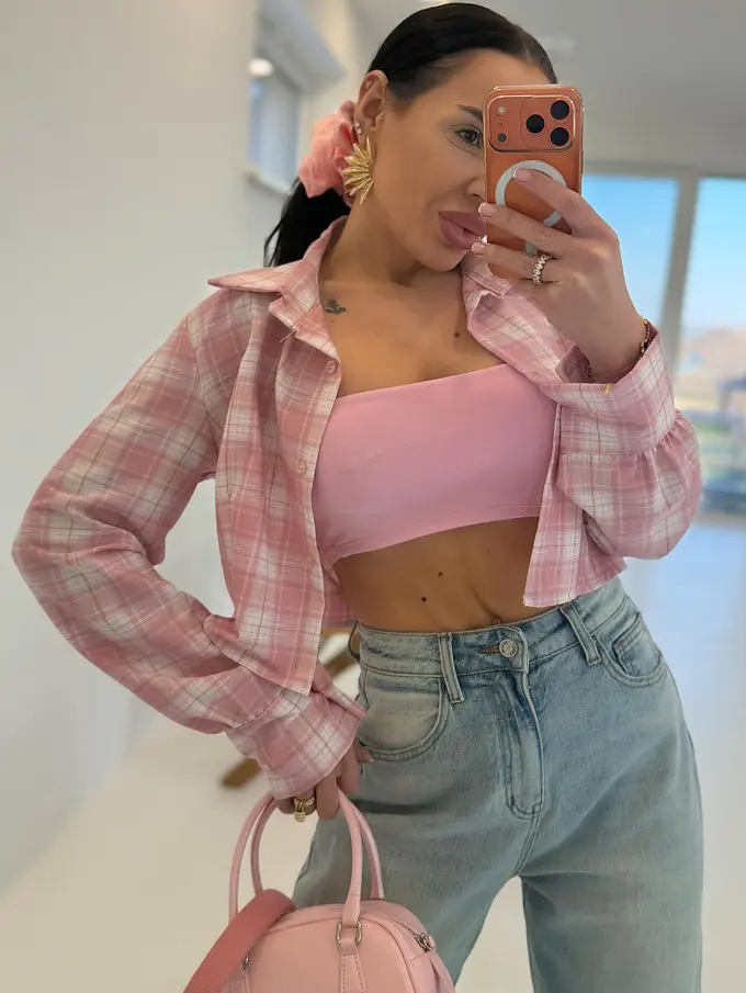 Károvaná crop košeľa s dlhým rukávom LEA