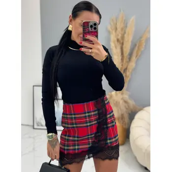 Károvaná sukňa s čipkou ELEEN