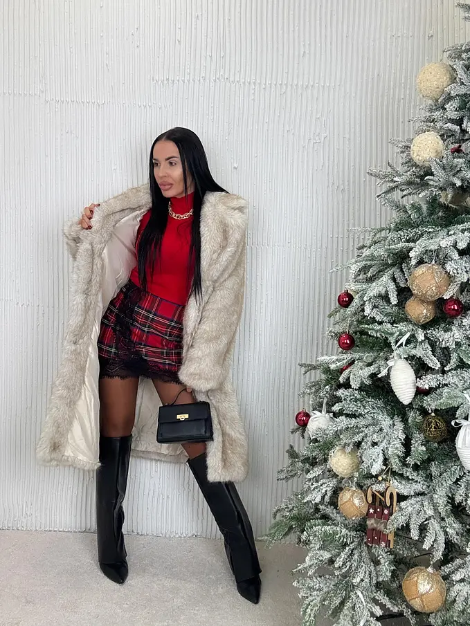 Štýlová károvaná sukňa s elegantnou čipkovanou aplikáciou. Vzadu so zipsom.