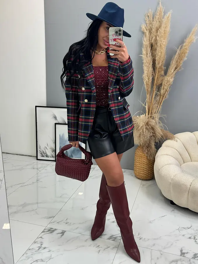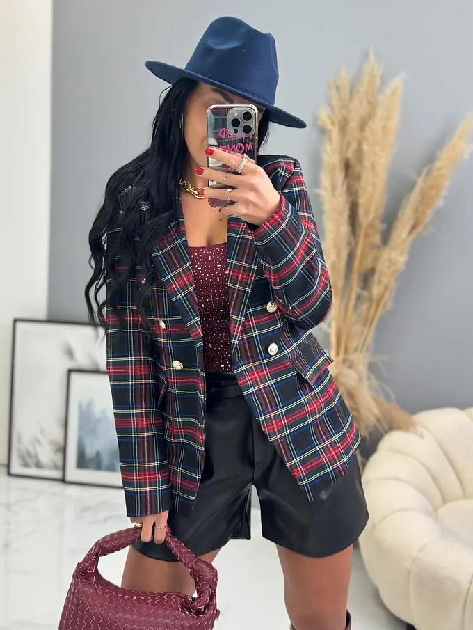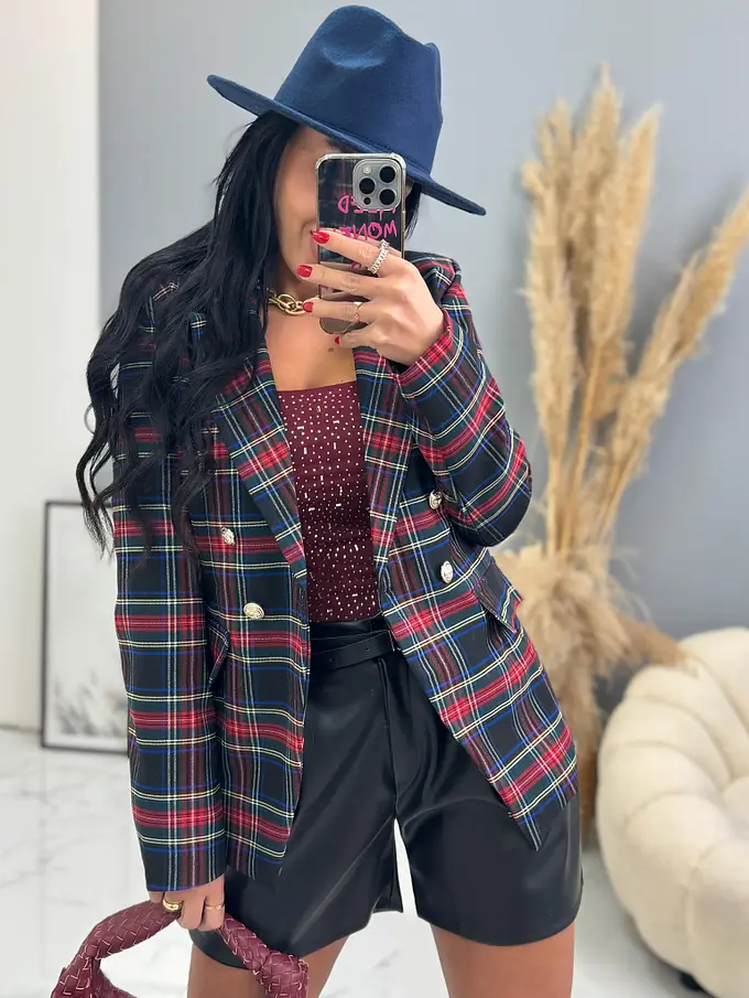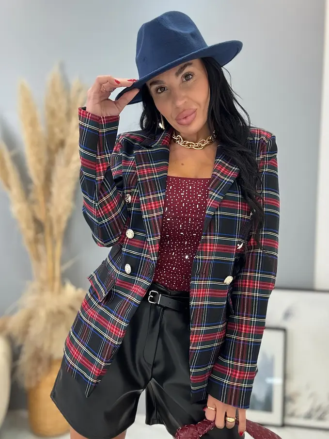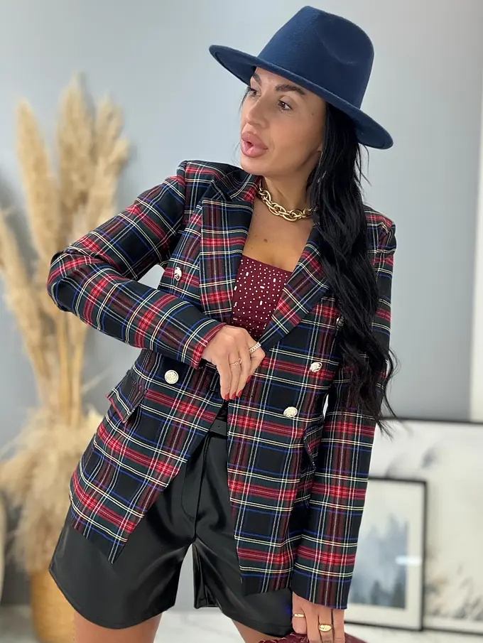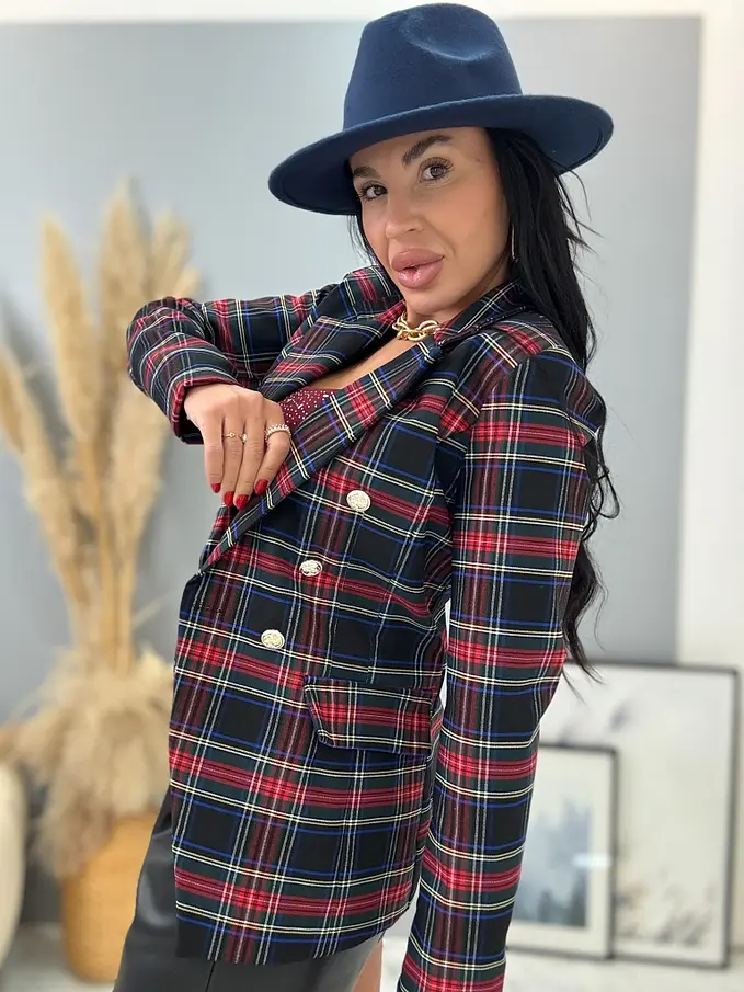 Kárované sako so zlatými gombíkmi MEARA+