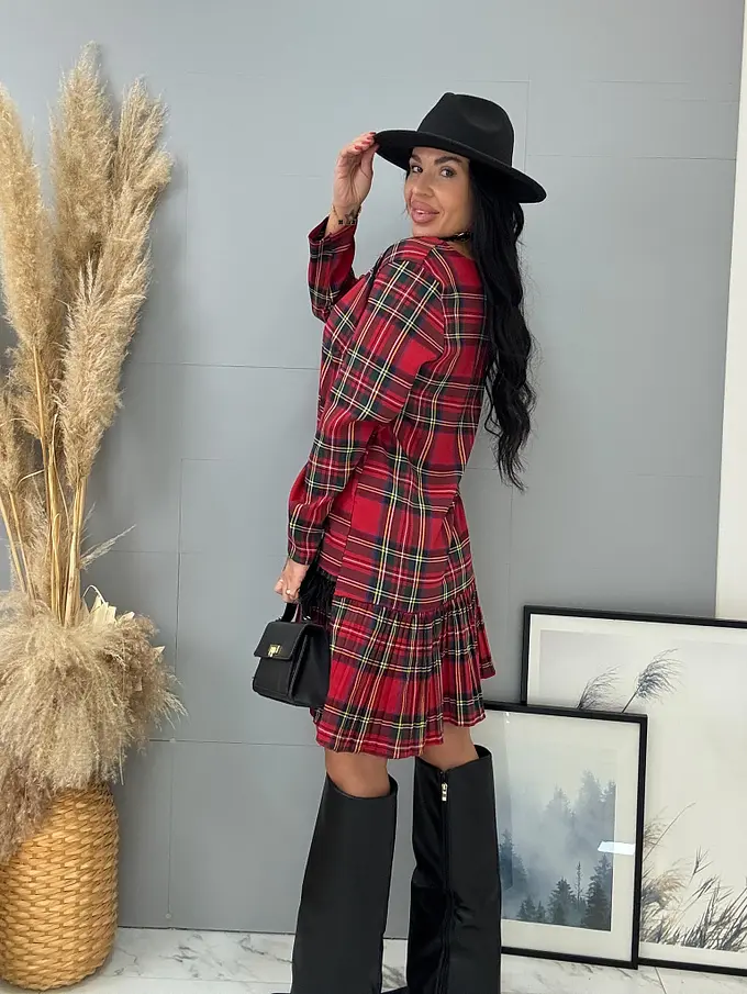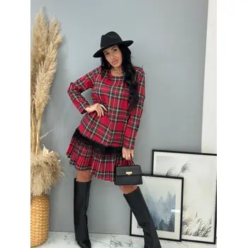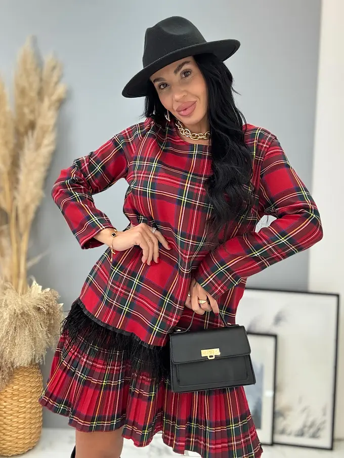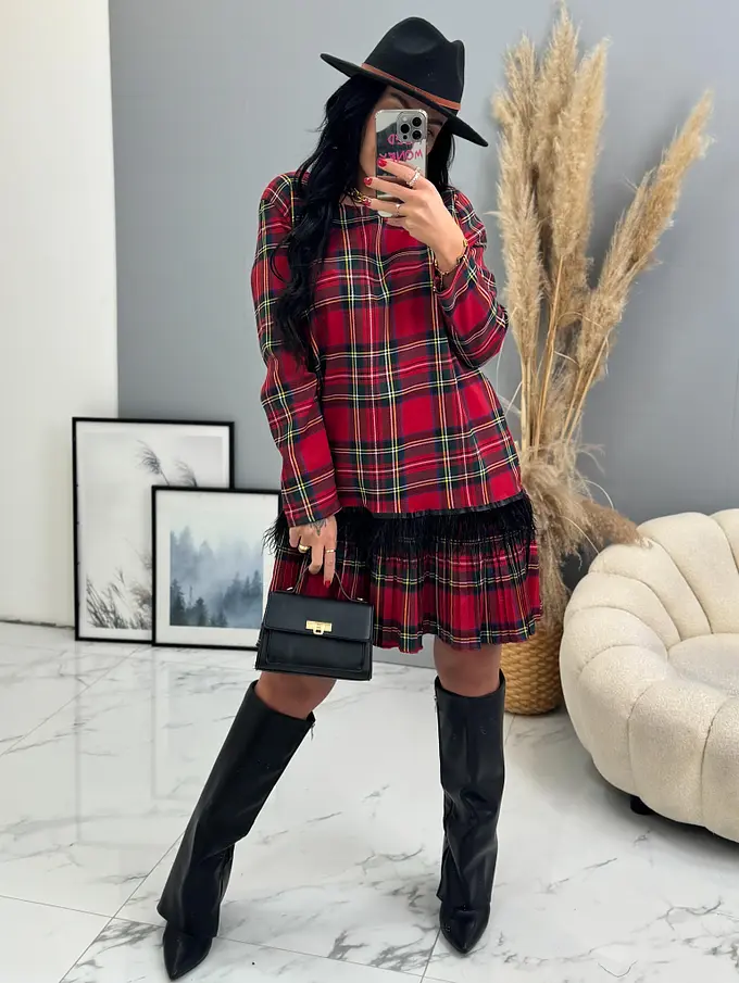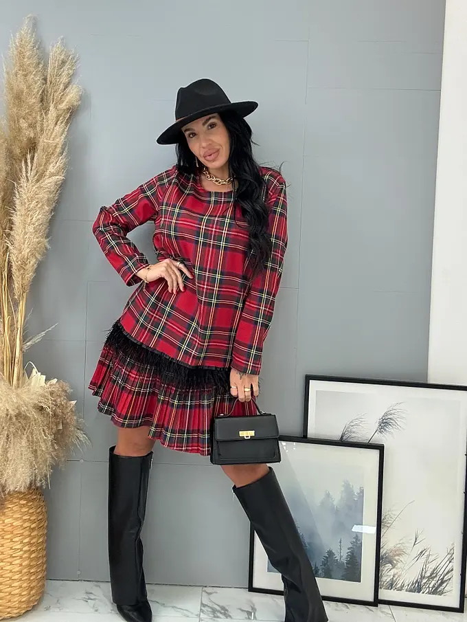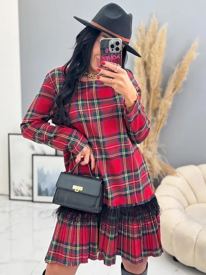 Kárované šaty zdobené pierkami CLORA+