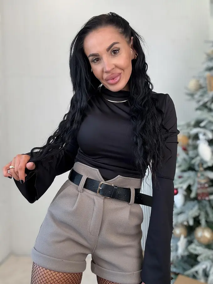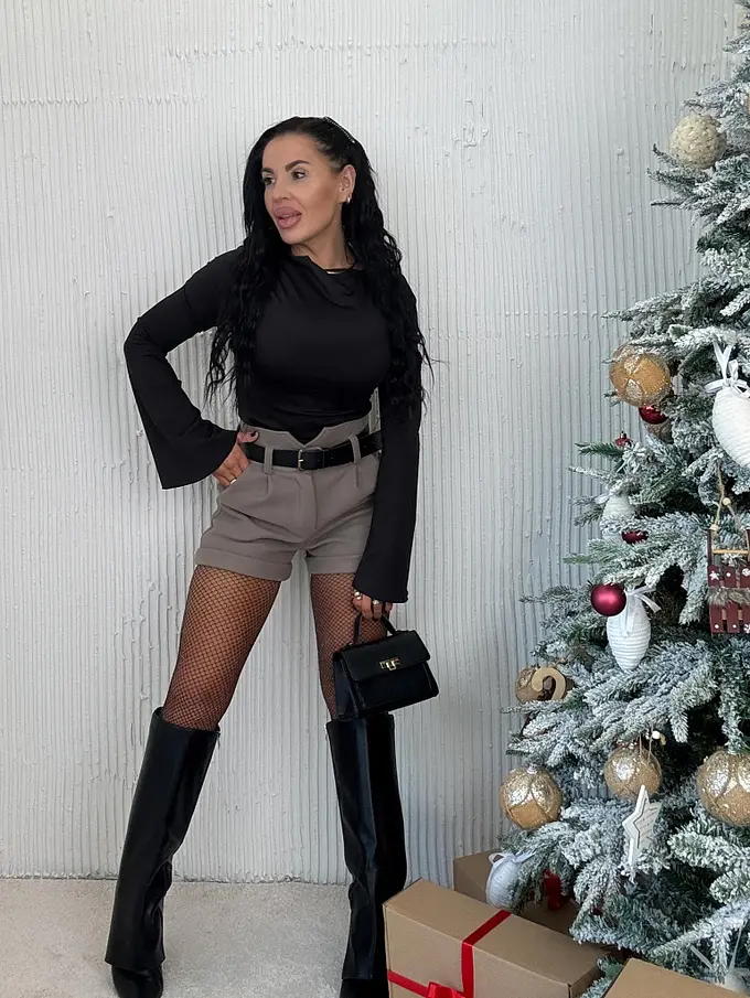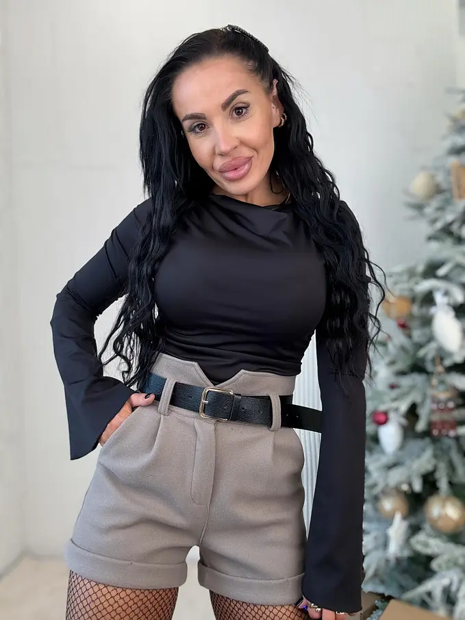 Ženské šortky s opaskom. Látka je mierne elastická, príjemná a teplá.
