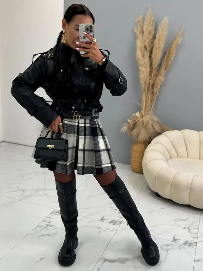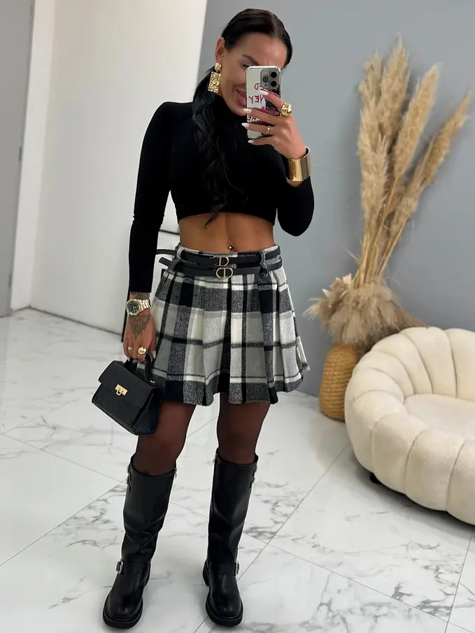 Kockovaná plisovaná sukňa s opaskom CAMBRIA+